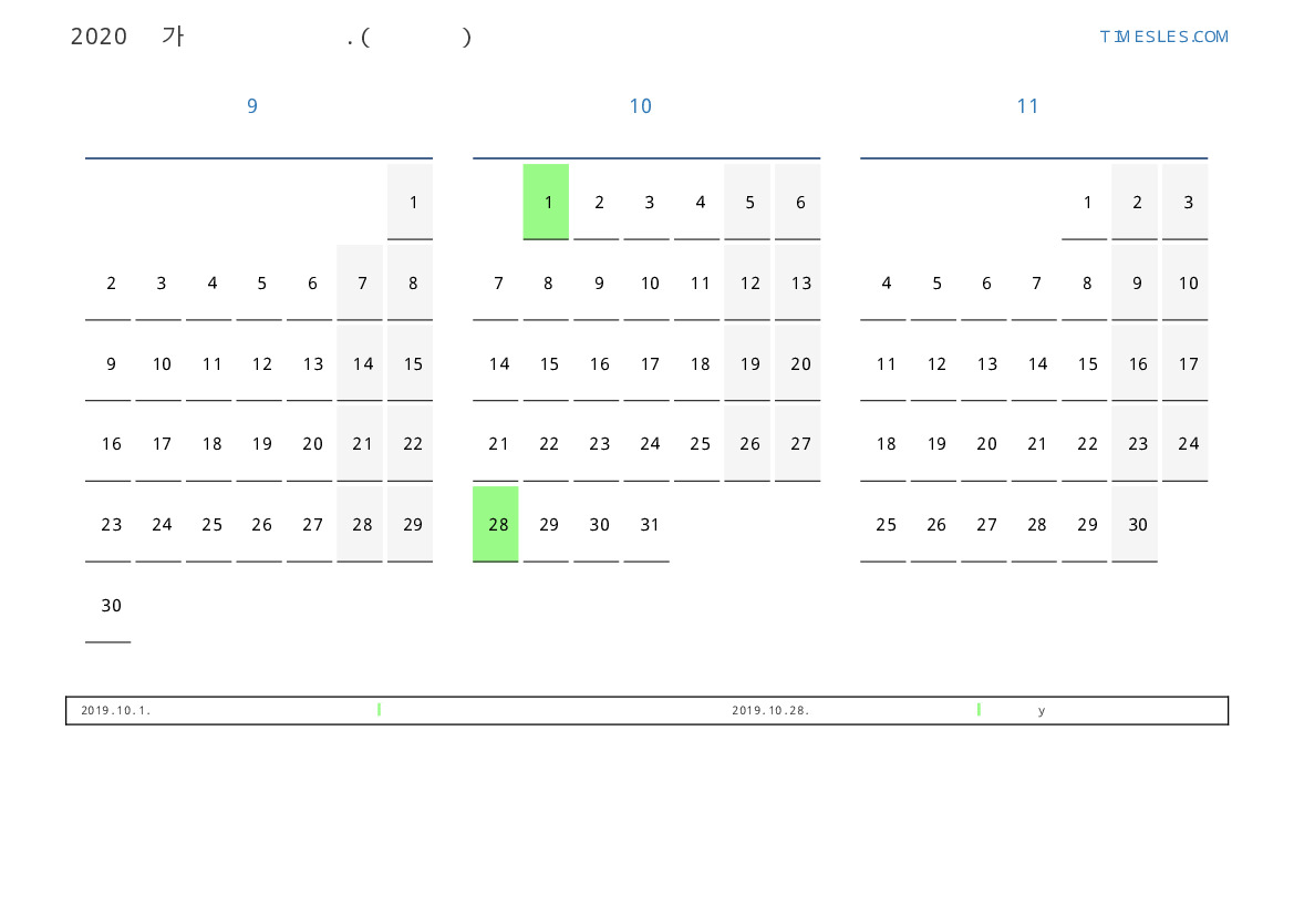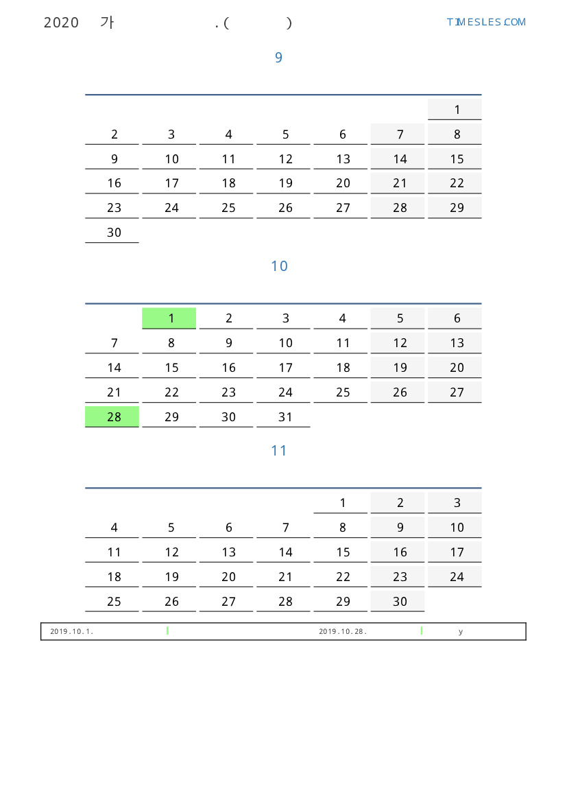 키프로스 2019 년 가을을 위해 공휴일 및 주말이 포함 된 PDF 캘린더 다운로드 및 인쇄