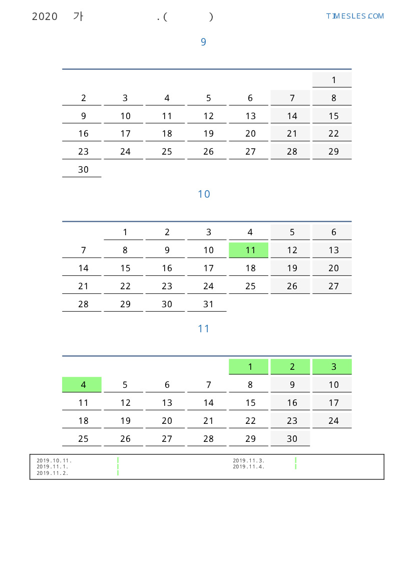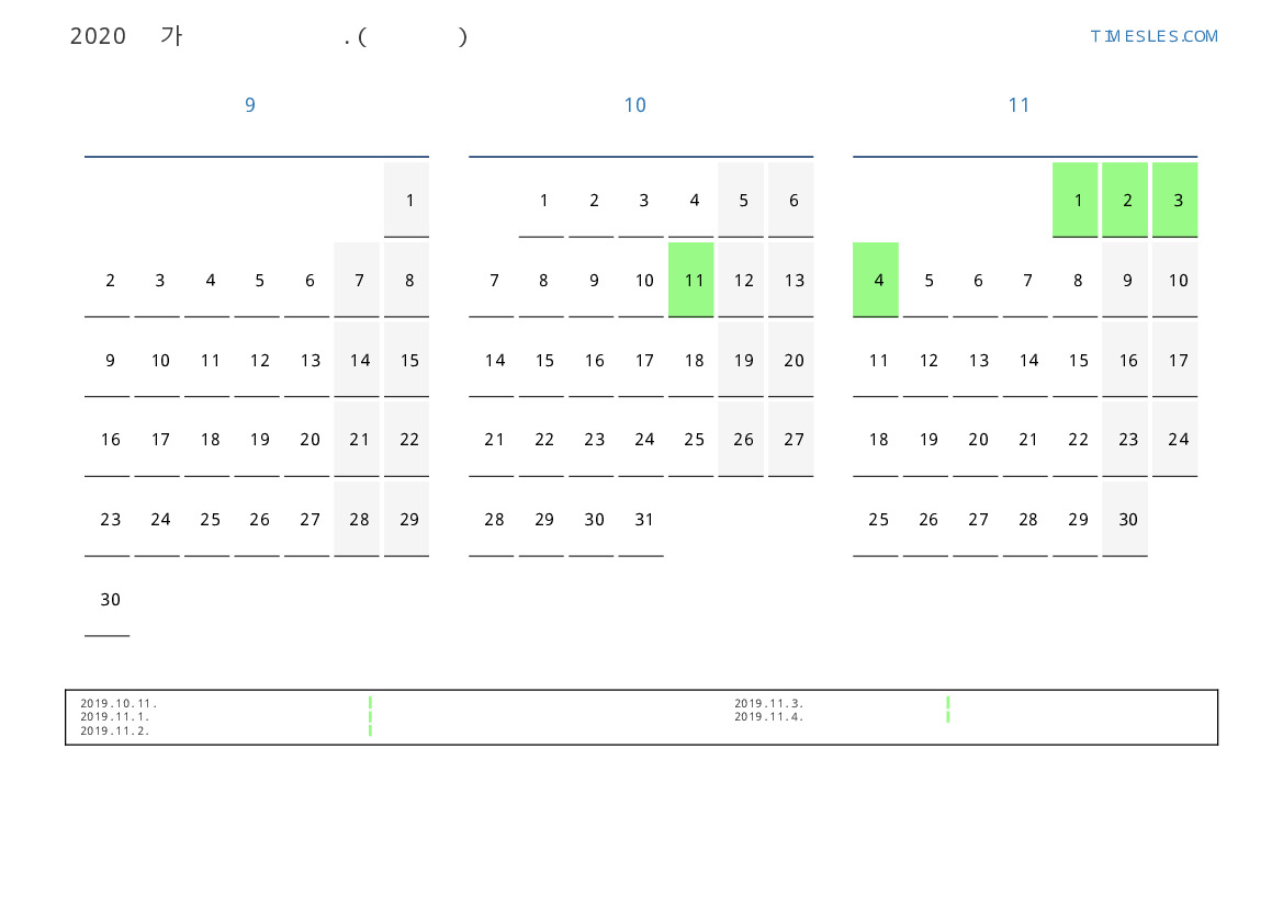 연휴가있는 계절별 세로 달력