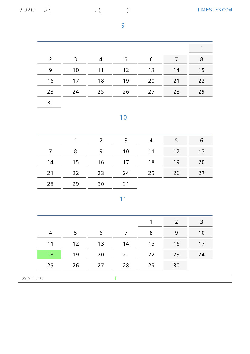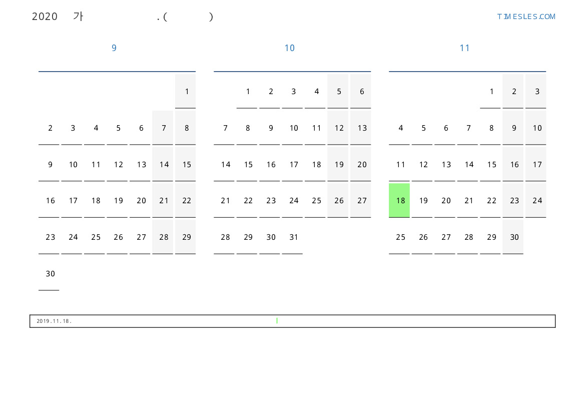 라트비아 2019 년 가을을 위해 공휴일 및 주말이 포함 된 PDF 캘린더 다운로드 및 인쇄