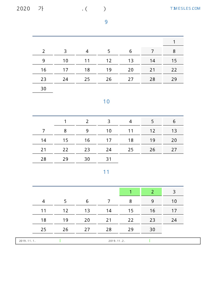 스웨덴 2019 년 가을을 위해 공휴일 및 주말이 포함 된 PDF 캘린더 다운로드 및 인쇄