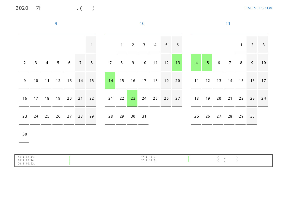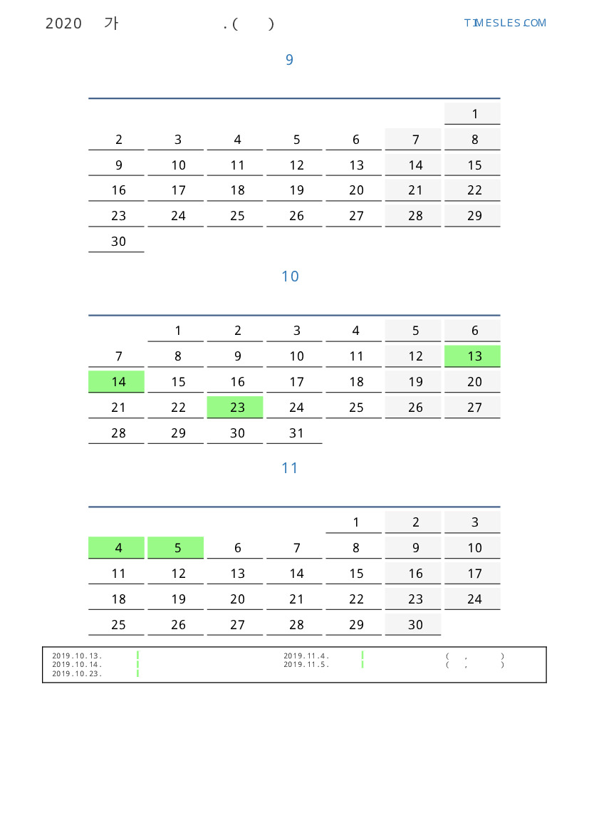 태국 2019 년 가을을 위해 공휴일 및 주말이 포함 된 PDF 캘린더 다운로드 및 인쇄
