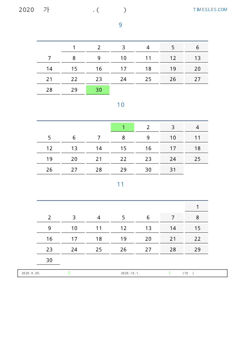 보츠와나 2020 년 가을을 위해 공휴일 및 주말이 포함 된 PDF 캘린더 다운로드 및 인쇄