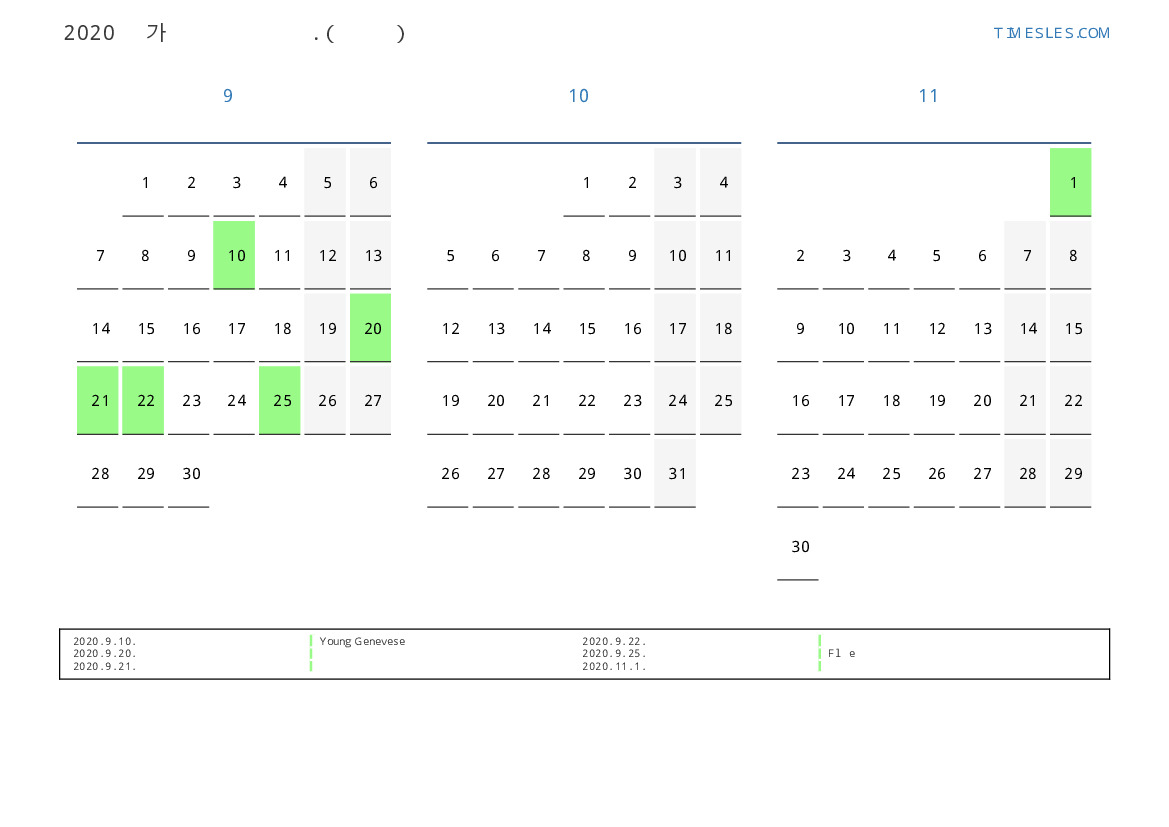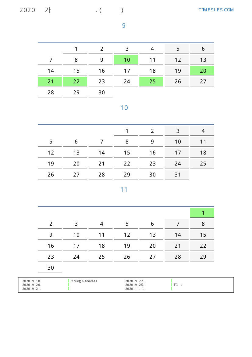 스위스 2020 년 가을을 위해 공휴일 및 주말이 포함 된 PDF 캘린더 다운로드 및 인쇄