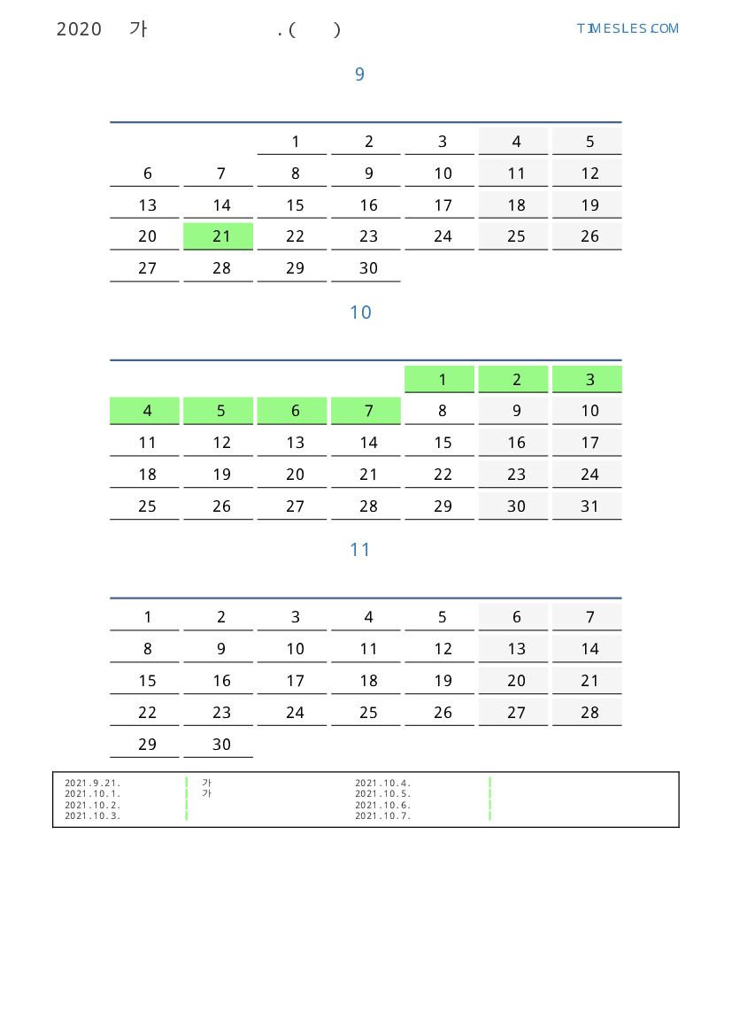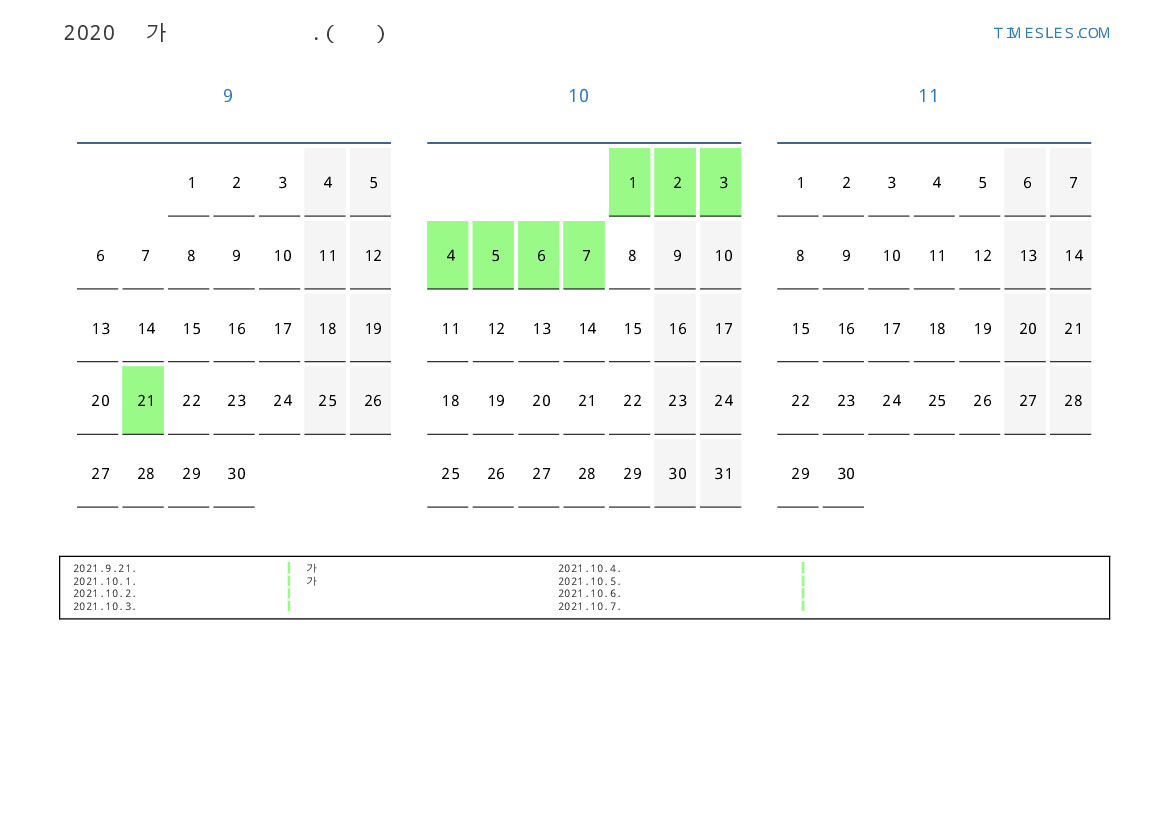 중국 2021 년 가을을 위해 공휴일 및 주말이 포함 된 PDF 캘린더 다운로드 및 인쇄