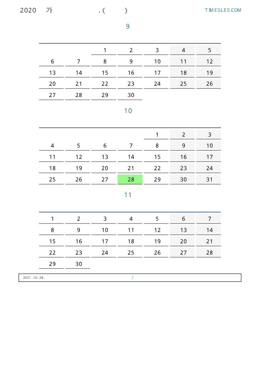 그리스 2021 년 가을을 위해 공휴일 및 주말이 포함 된 PDF 캘린더 다운로드 및 인쇄