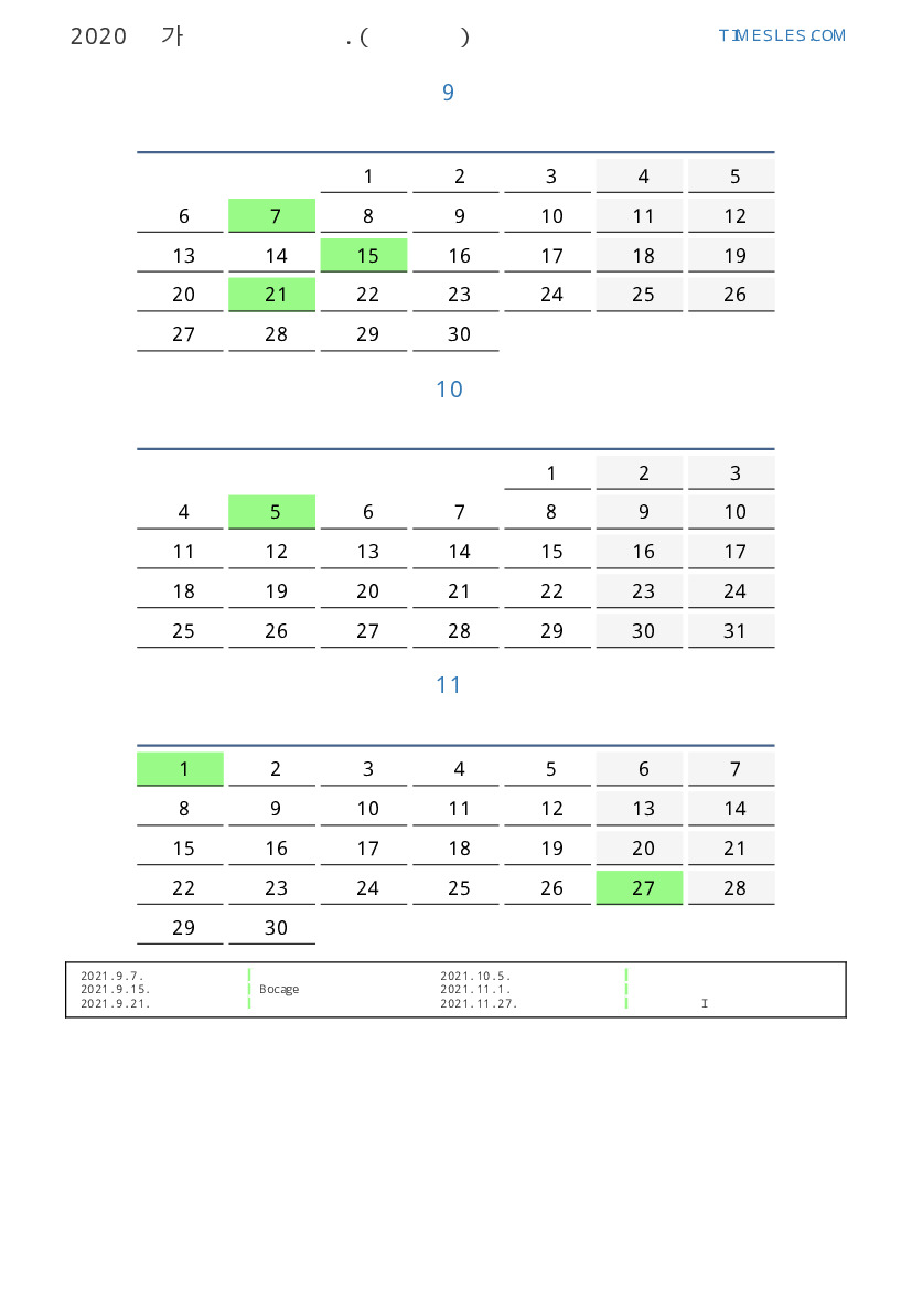 포르투갈 2021 년 가을을 위해 공휴일 및 주말이 포함 된 PDF 캘린더 다운로드 및 인쇄