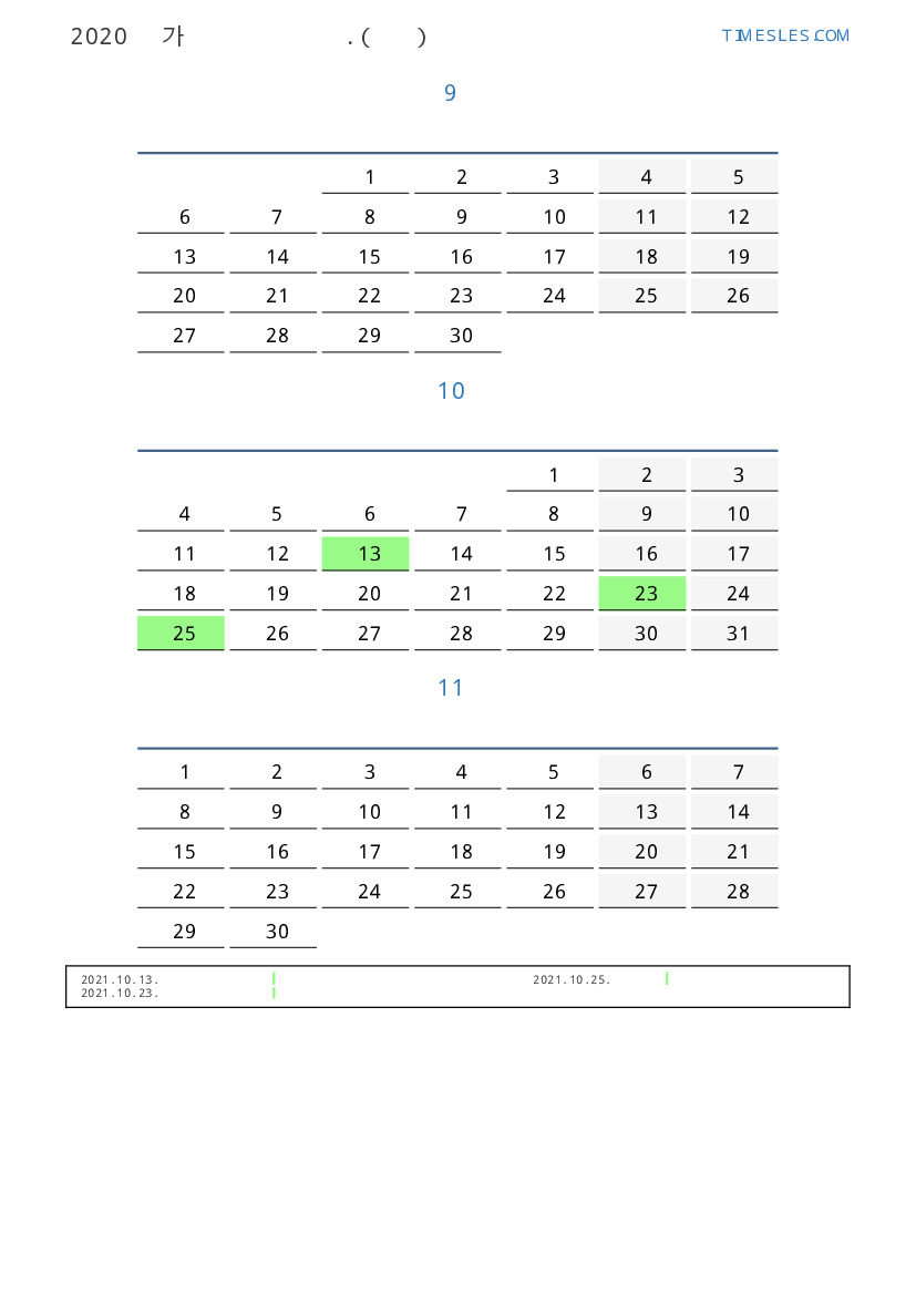 태국 2021 년 가을을 위해 공휴일 및 주말이 포함 된 PDF 캘린더 다운로드 및 인쇄