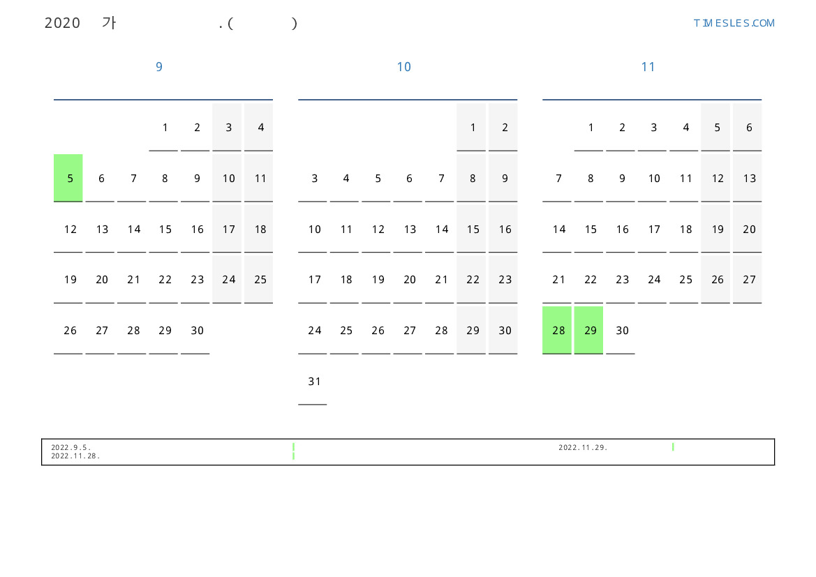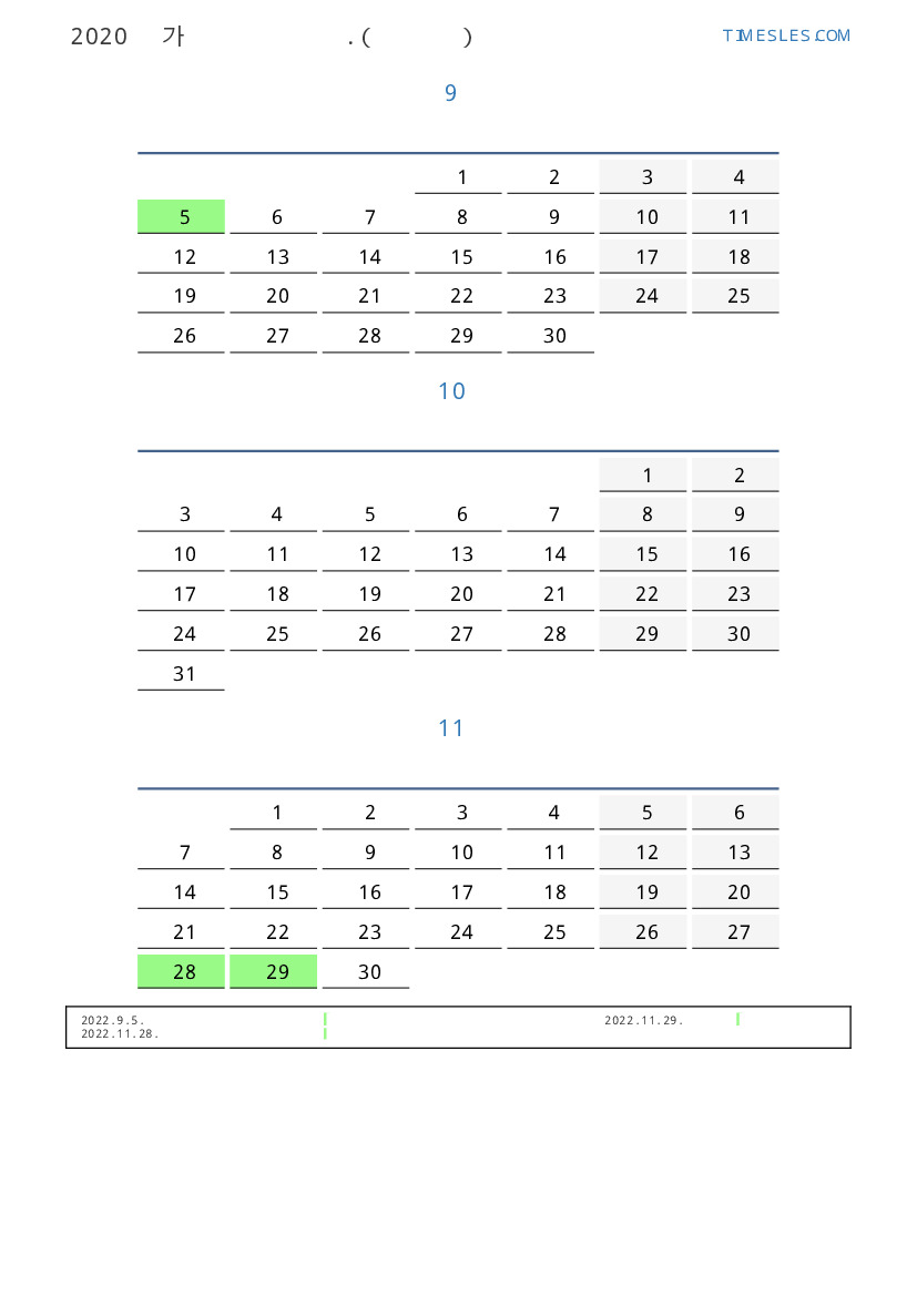 알바니아 2022 년 가을을 위해 공휴일 및 주말이 포함 된 PDF 캘린더 다운로드 및 인쇄
