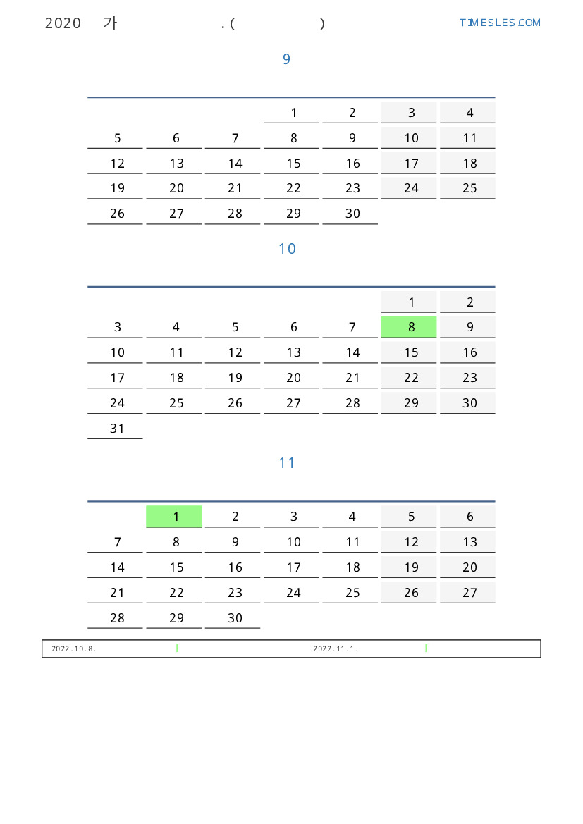 부르 키나 파소 2022 년 가을을 위해 공휴일 및 주말이 포함 된 PDF 캘린더 다운로드 및 인쇄