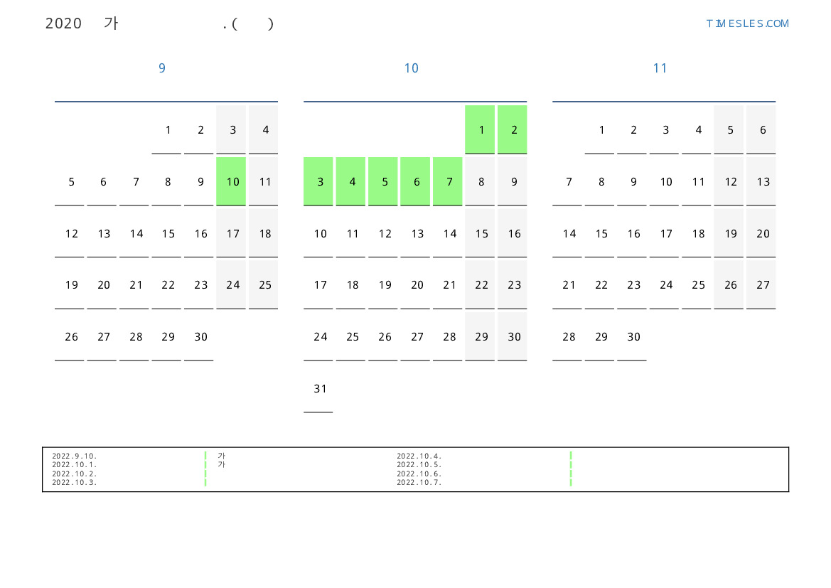중국 2022 년 가을을 위해 공휴일 및 주말이 포함 된 PDF 캘린더 다운로드 및 인쇄