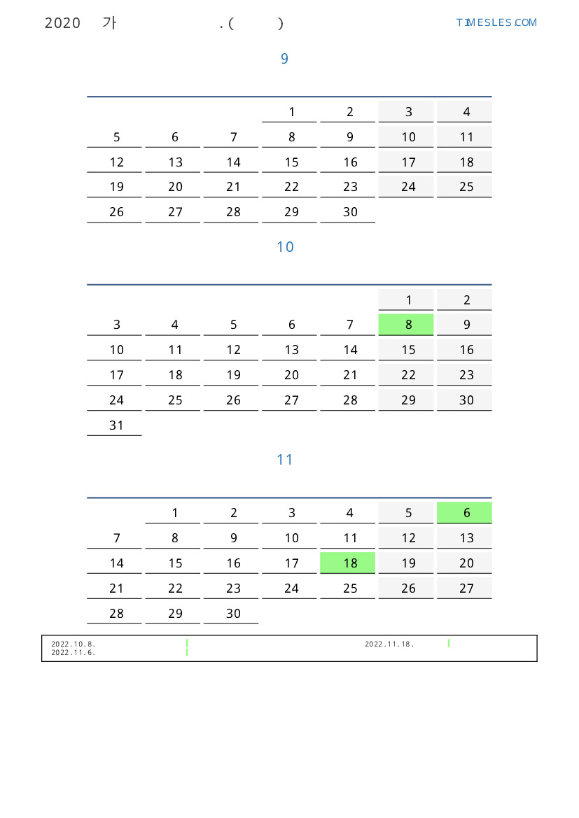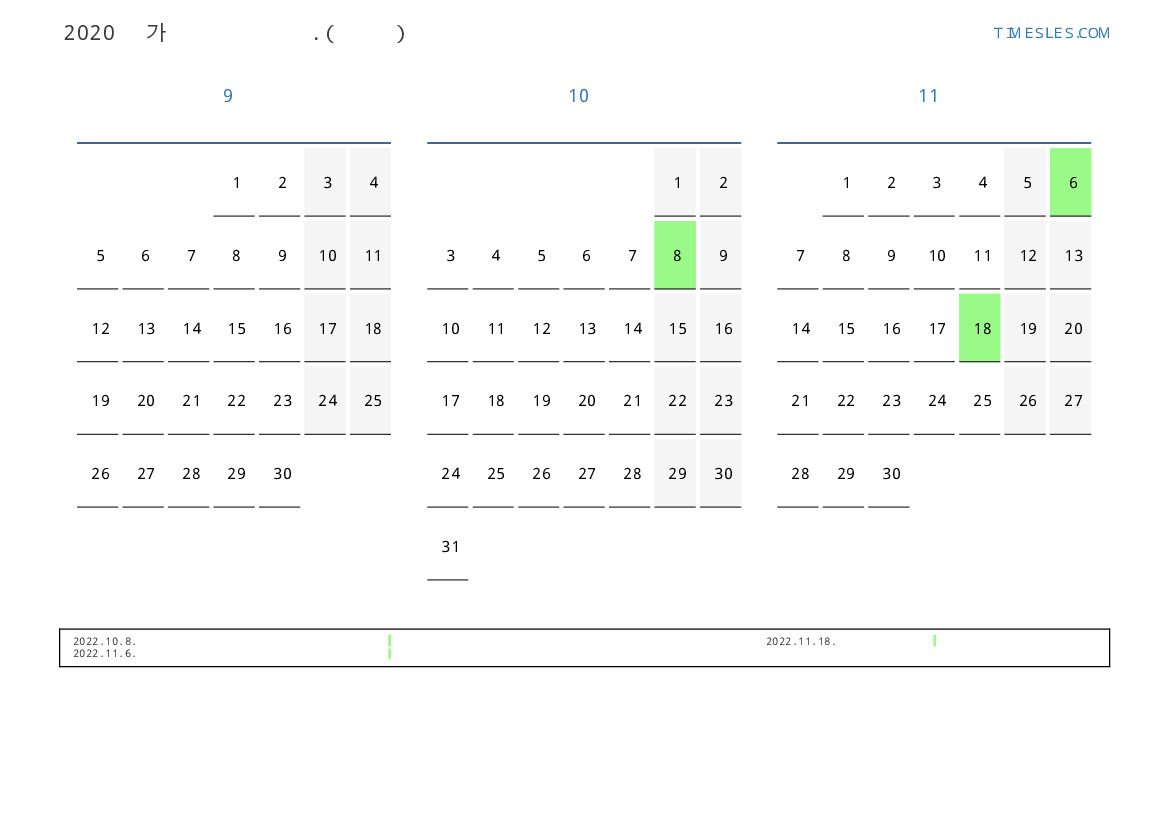 모로코 2022 년 가을을 위해 공휴일 및 주말이 포함 된 PDF 캘린더 다운로드 및 인쇄