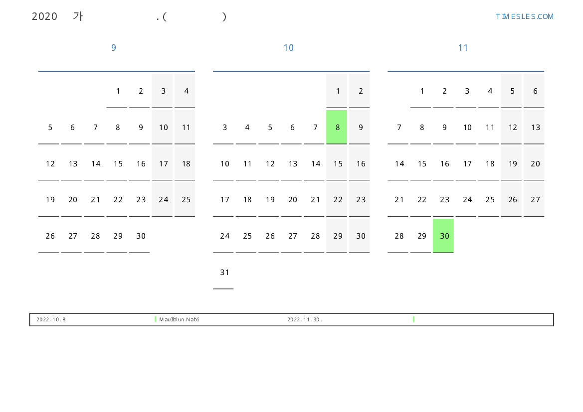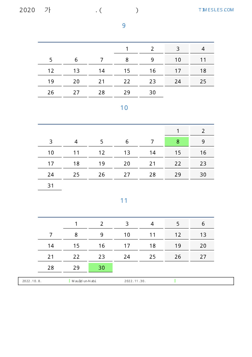 필리핀 2022 년 가을을 위해 공휴일 및 주말이 포함 된 PDF 캘린더 다운로드 및 인쇄