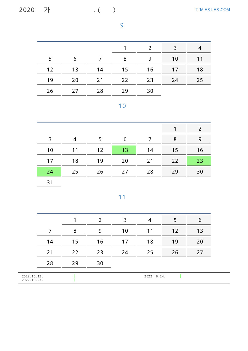태국 2022 년 가을을 위해 공휴일 및 주말이 포함 된 PDF 캘린더 다운로드 및 인쇄