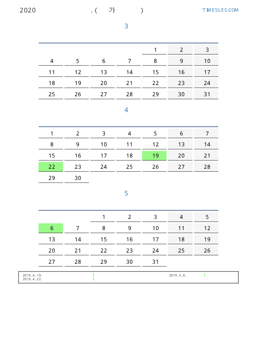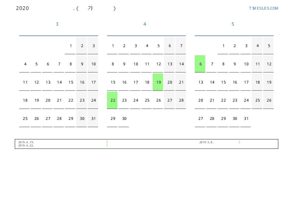 안티구아 및 바부 다 2019 년 봄을 위해 공휴일 및 주말이 포함 된 PDF 캘린더 다운로드 및 인쇄