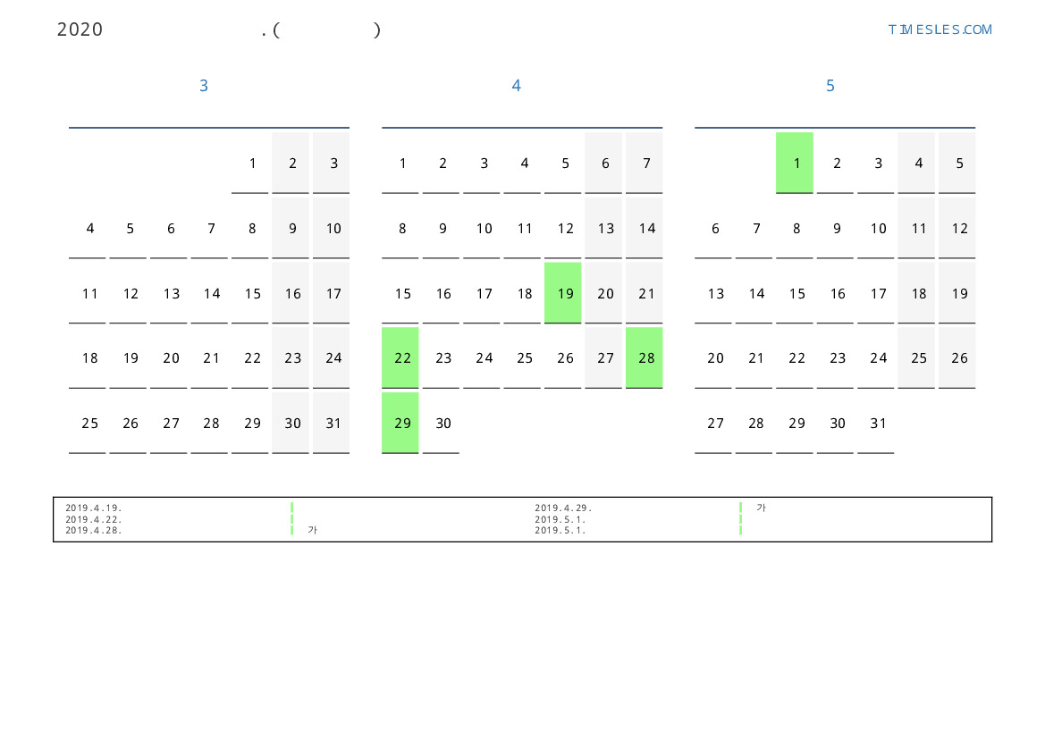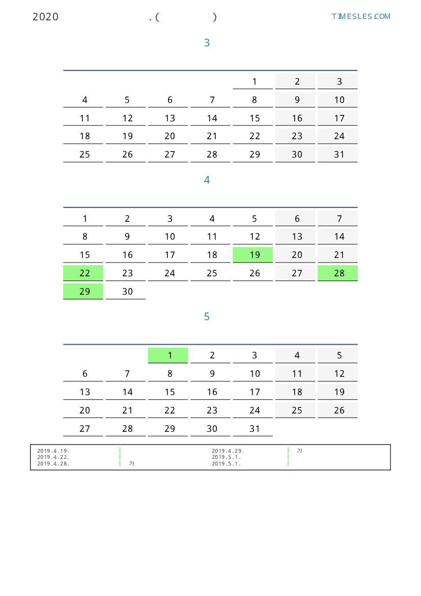 바베이도스 2019 년 봄을 위해 공휴일 및 주말이 포함 된 PDF 캘린더 다운로드 및 인쇄