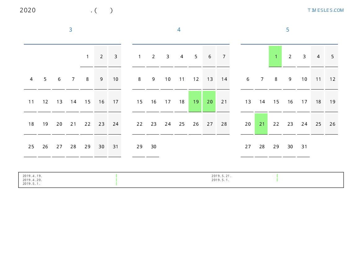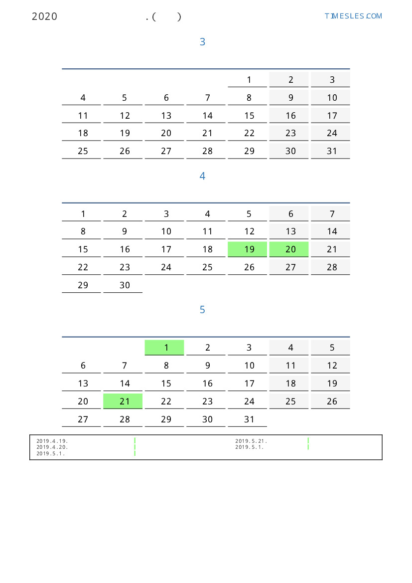 칠레 2019 년 봄을 위해 공휴일 및 주말이 포함 된 PDF 캘린더 다운로드 및 인쇄