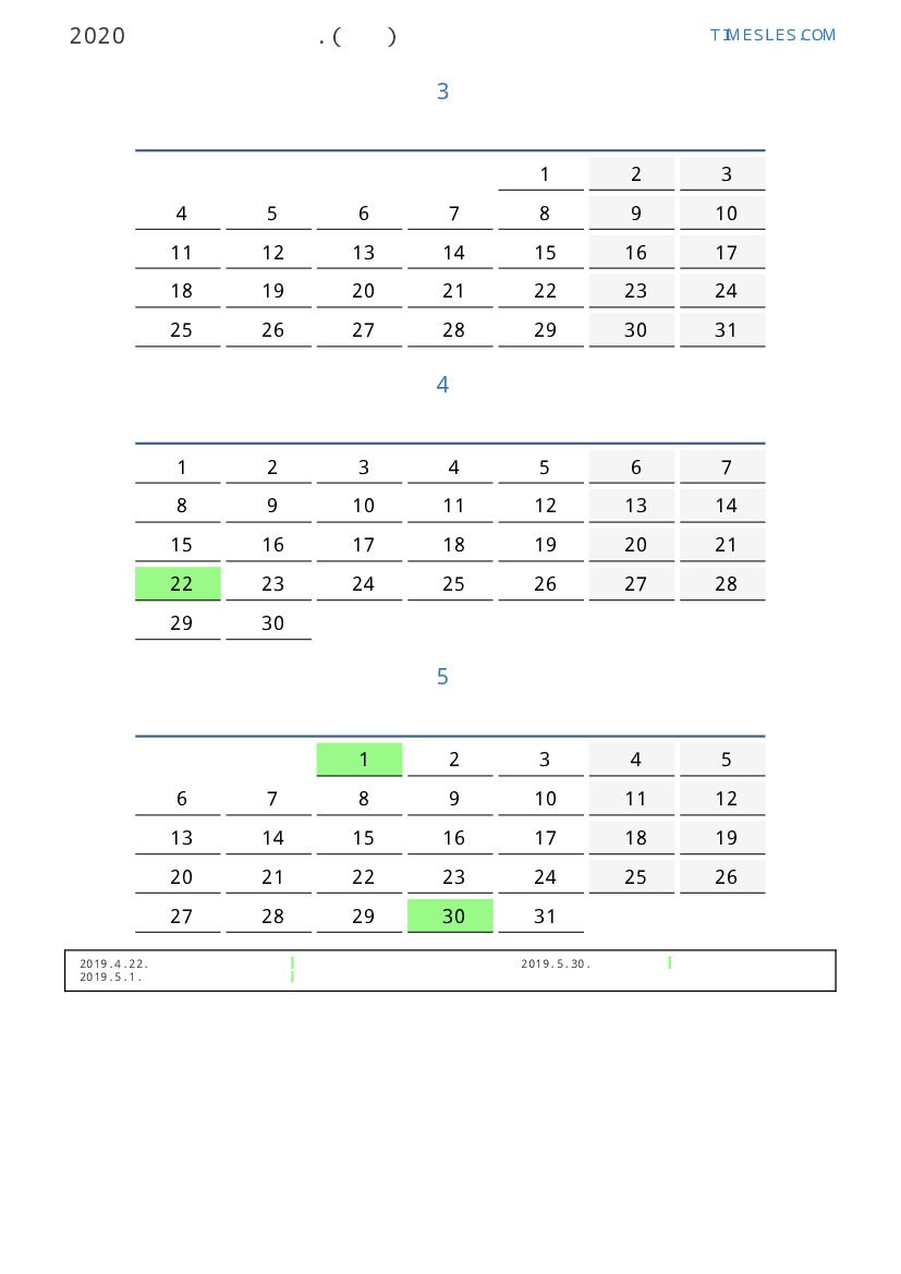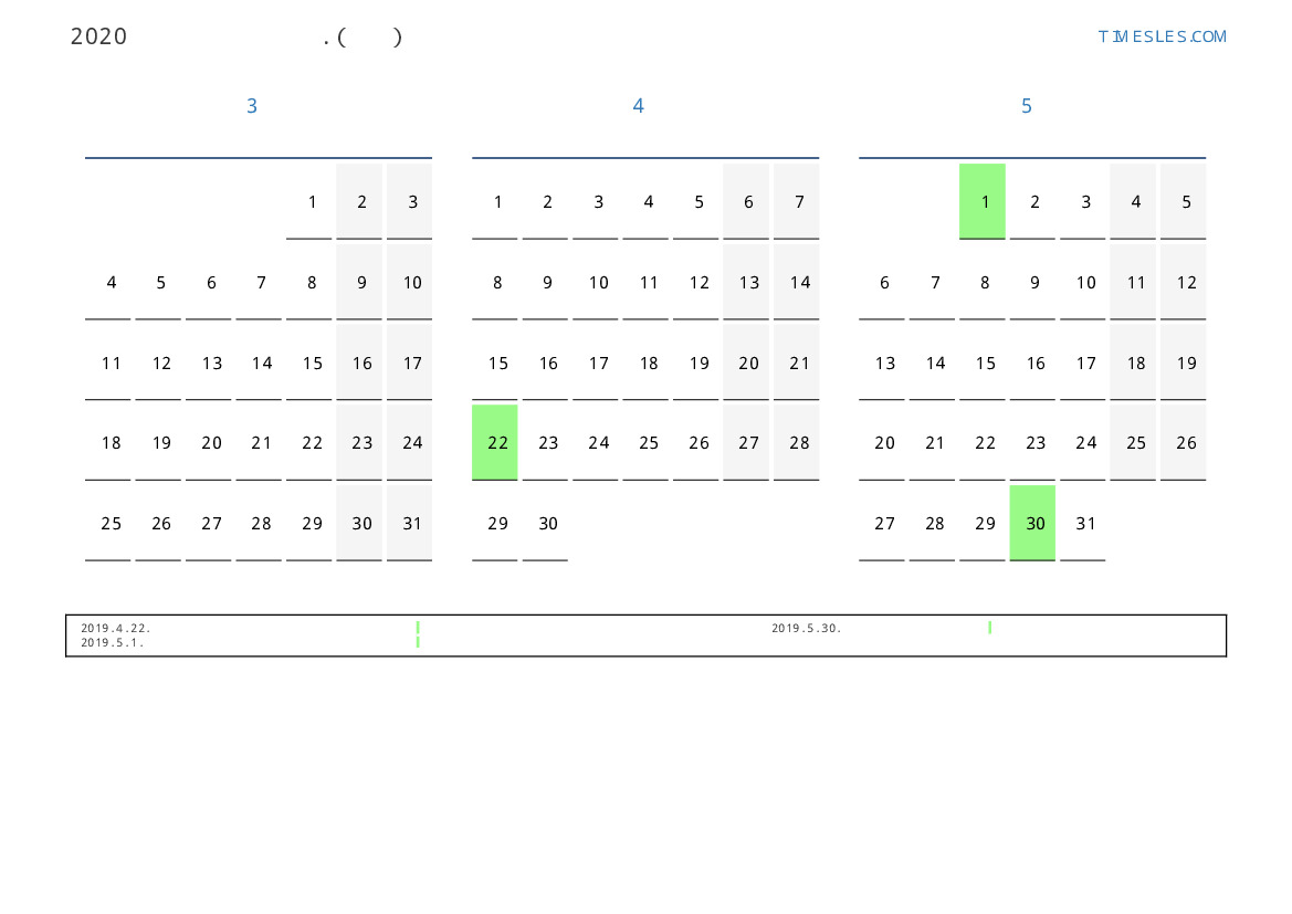 콩고 2019 년 봄을 위해 공휴일 및 주말이 포함 된 PDF 캘린더 다운로드 및 인쇄