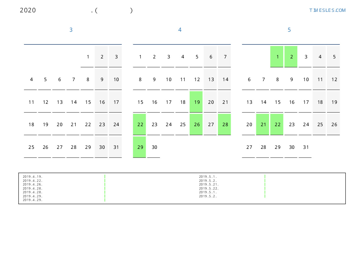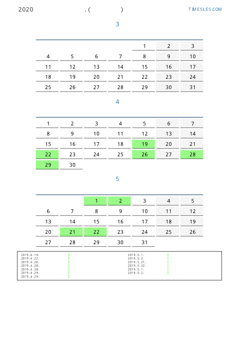 몬테네그로 2019 년 봄을 위해 공휴일 및 주말이 포함 된 PDF 캘린더 다운로드 및 인쇄