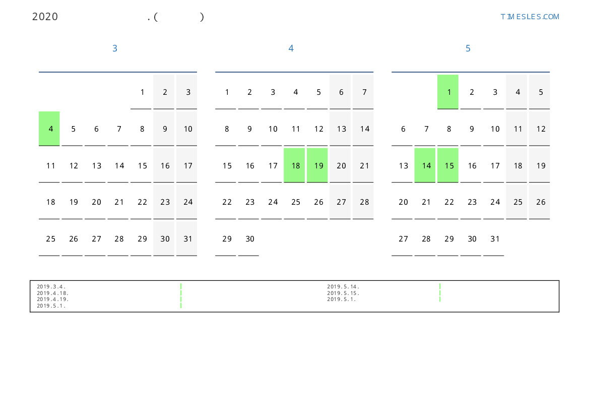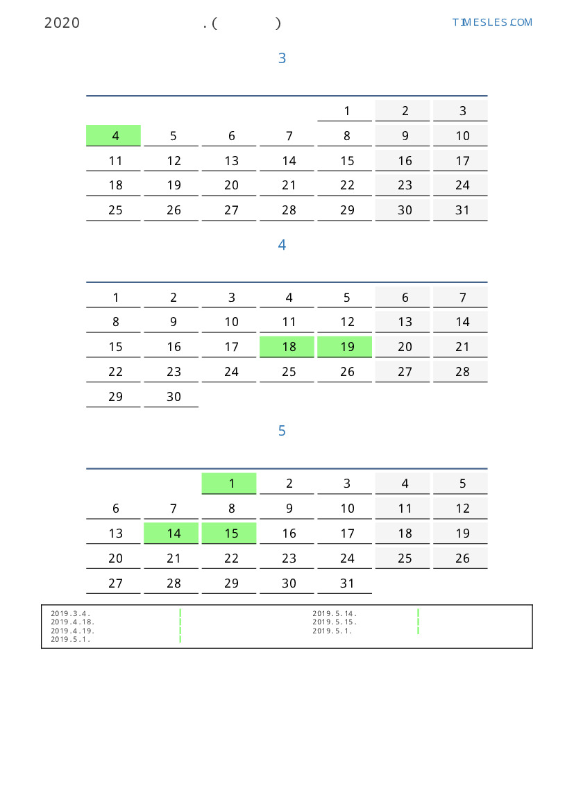 파라과이 2019 년 봄을 위해 공휴일 및 주말이 포함 된 PDF 캘린더 다운로드 및 인쇄