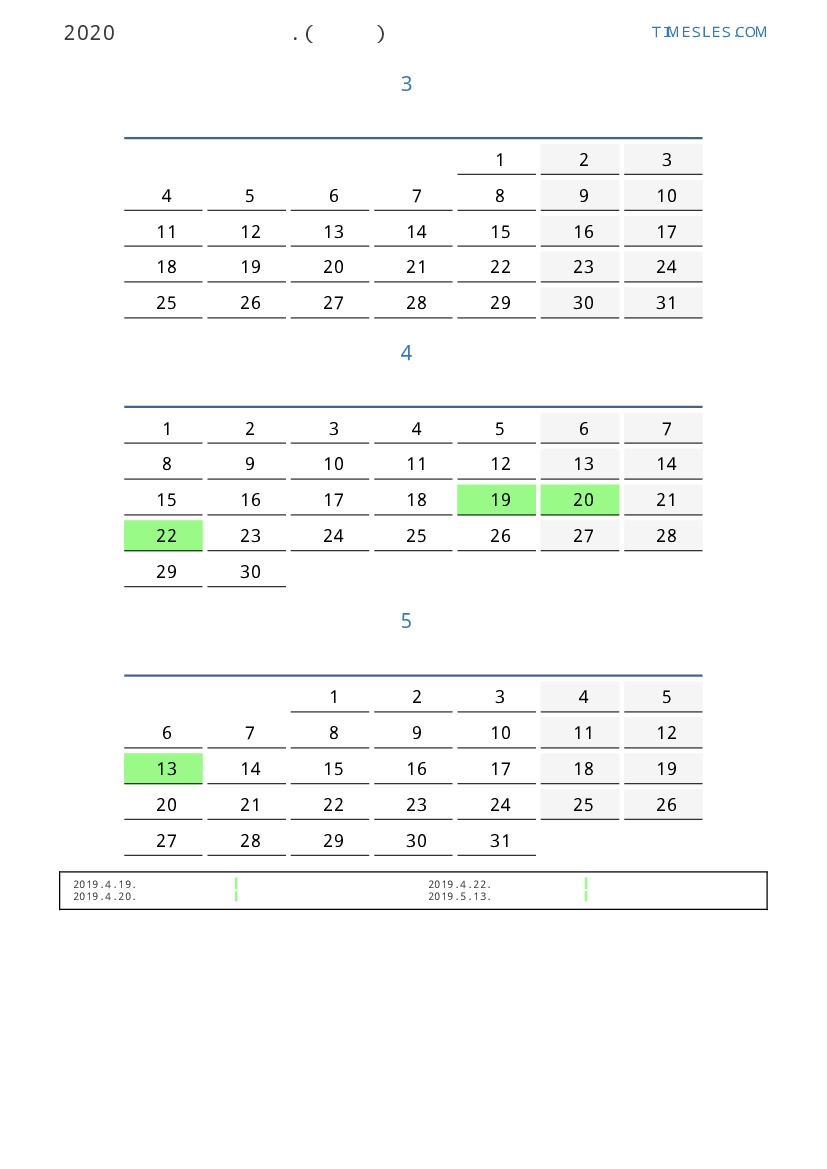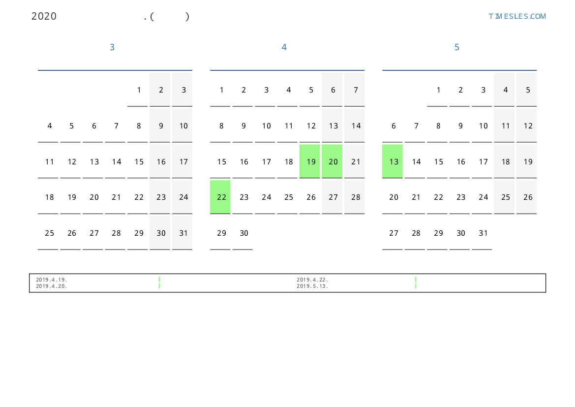 사모아 2019 년 봄을 위해 공휴일 및 주말이 포함 된 PDF 캘린더 다운로드 및 인쇄