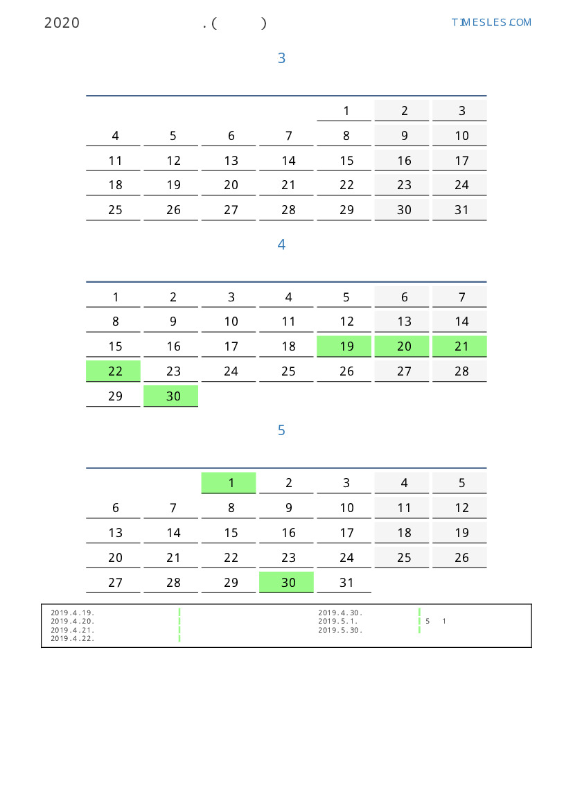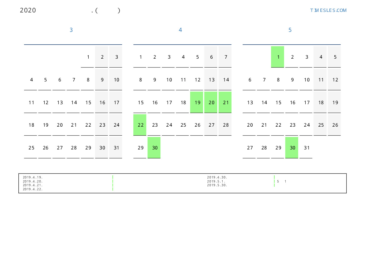 연휴가있는 계절별 세로 달력