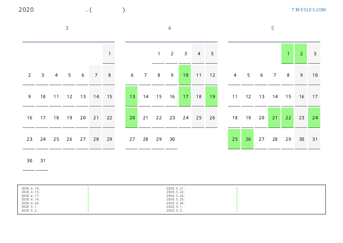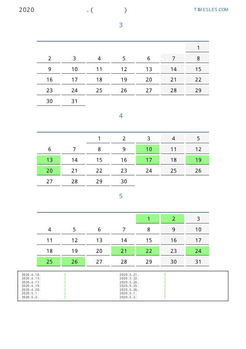 몬테네그로 2020 년 봄을 위해 공휴일 및 주말이 포함 된 PDF 캘린더 다운로드 및 인쇄