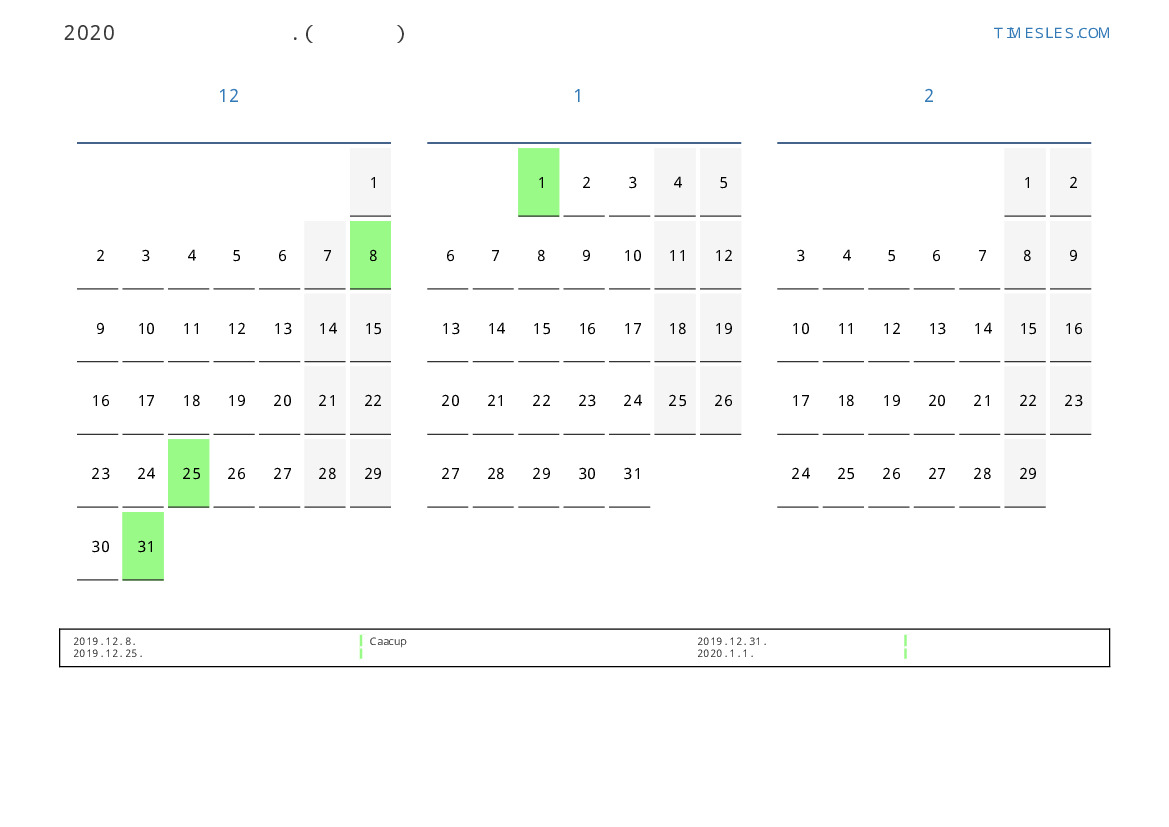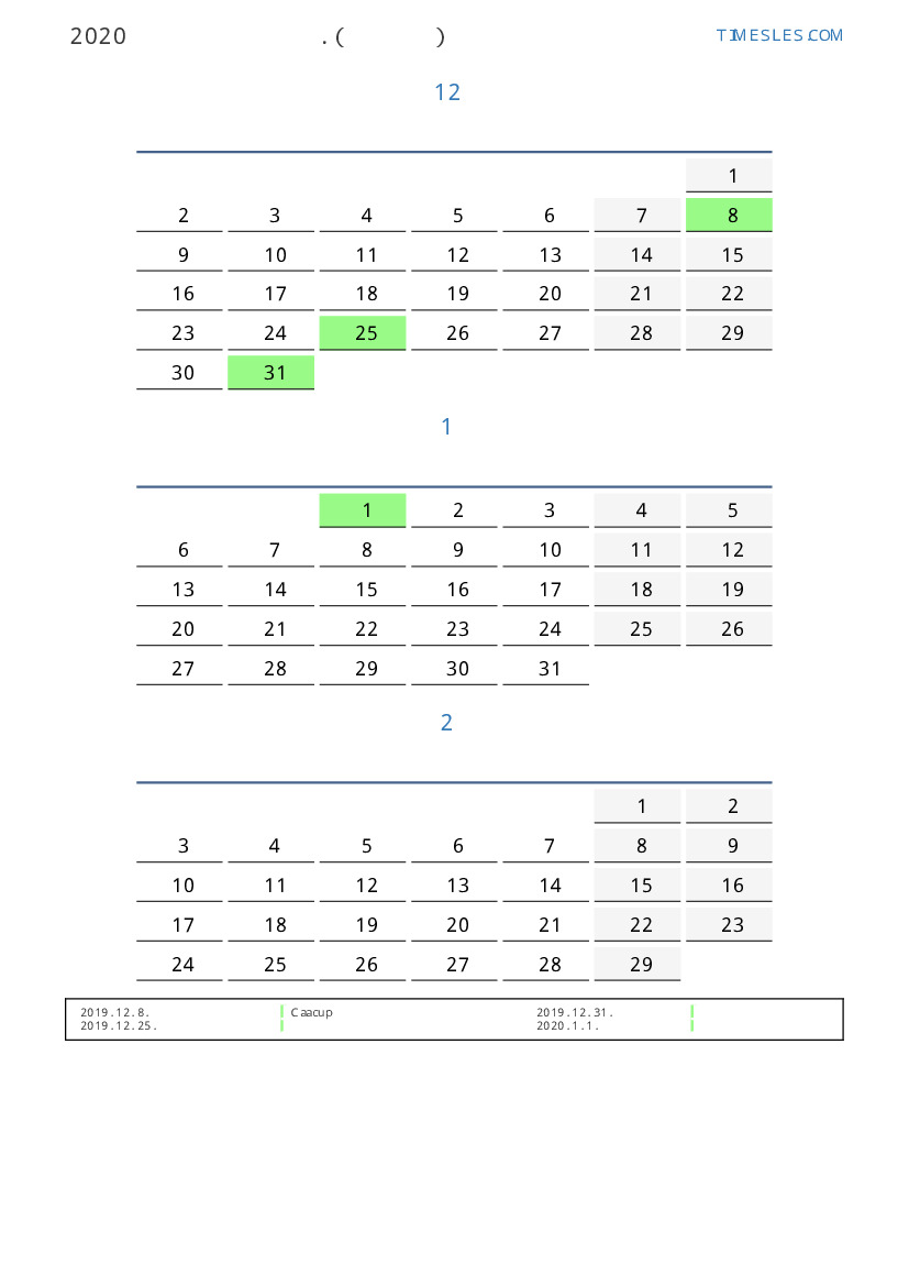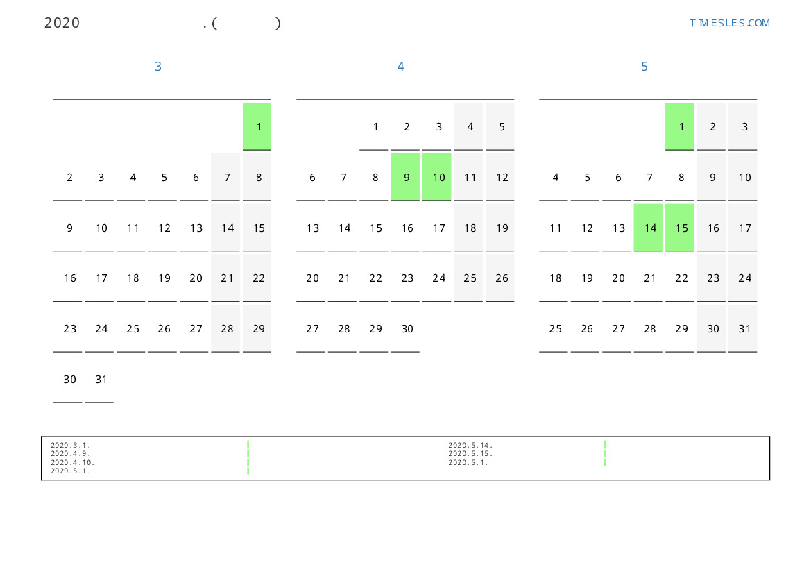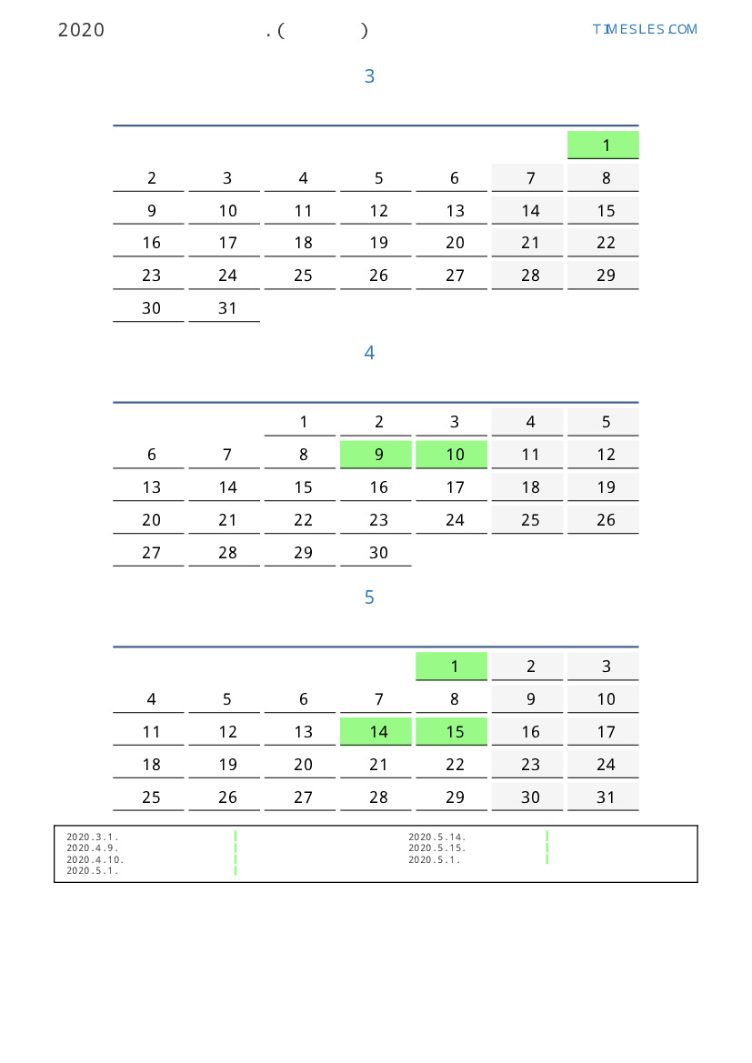 파라과이 2020 년 봄을 위해 공휴일 및 주말이 포함 된 PDF 캘린더 다운로드 및 인쇄