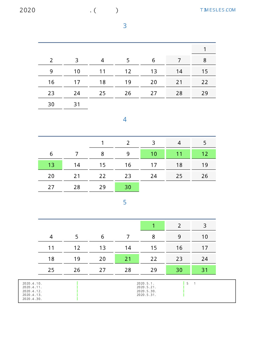 스웨덴 2020 년 봄을 위해 공휴일 및 주말이 포함 된 PDF 캘린더 다운로드 및 인쇄