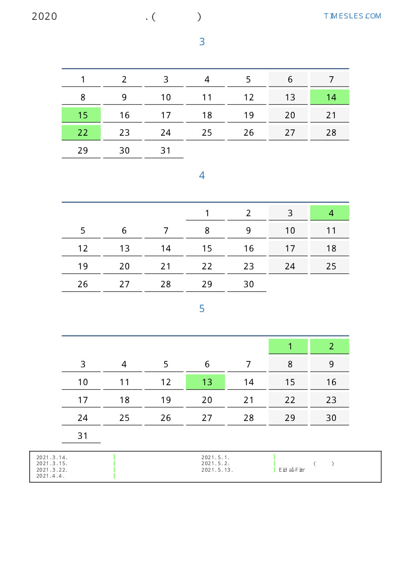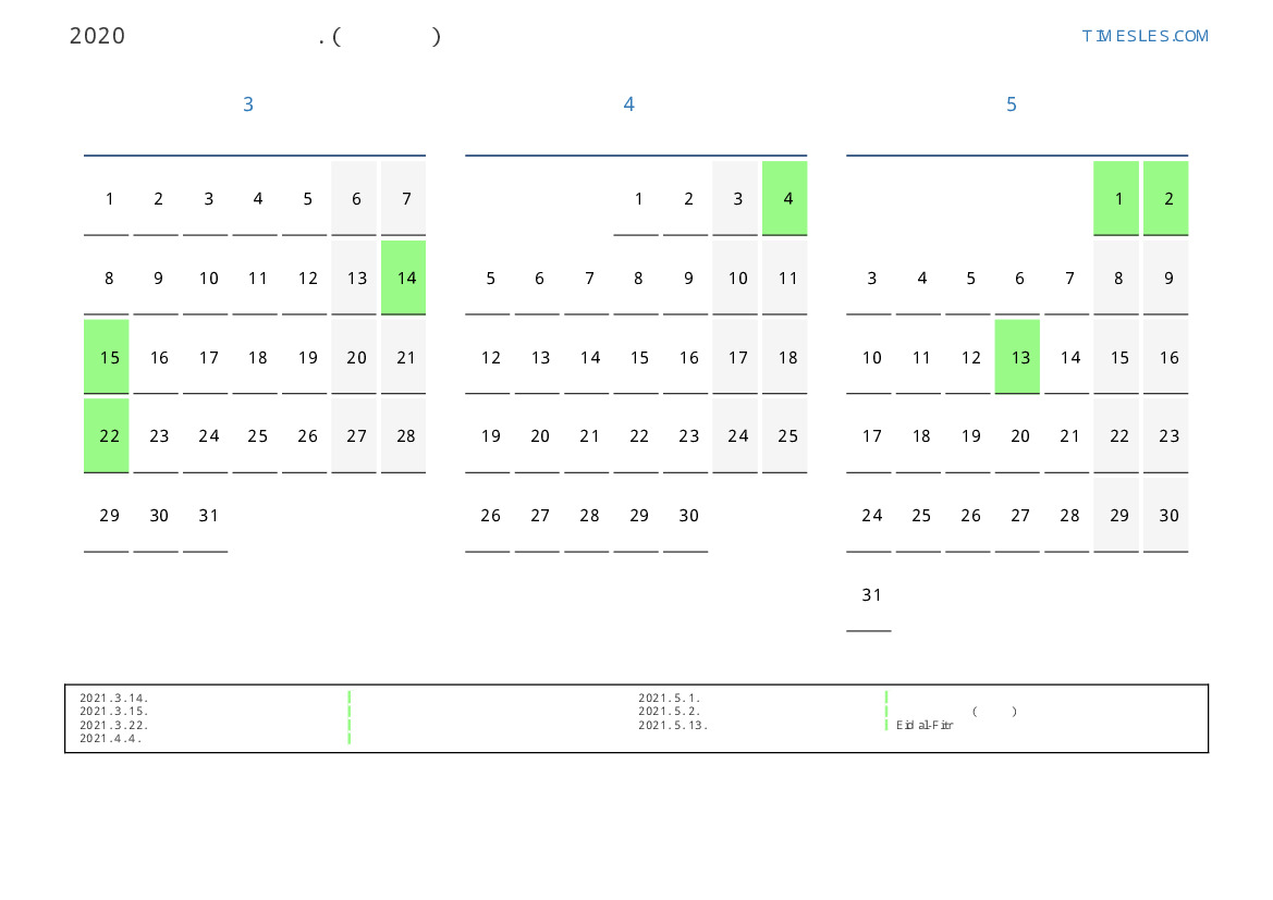 알바니아 2021 년 봄을 위해 공휴일 및 주말이 포함 된 PDF 캘린더 다운로드 및 인쇄
