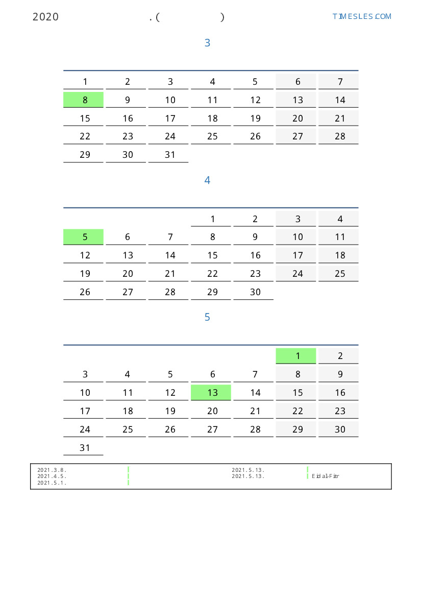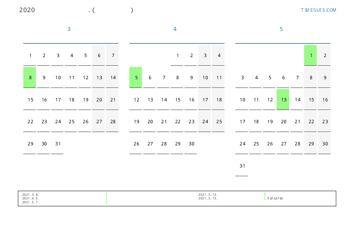 부르 키나 파소 2021 년 봄을 위해 공휴일 및 주말이 포함 된 PDF 캘린더 다운로드 및 인쇄