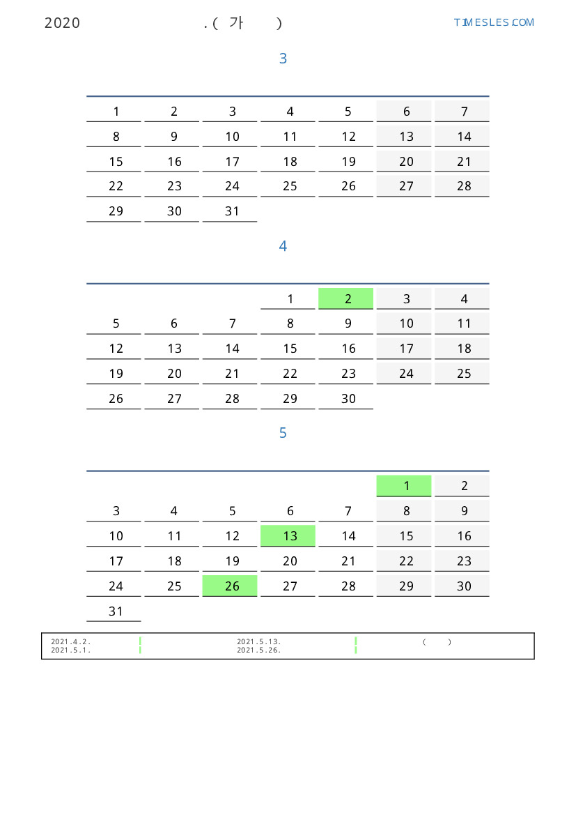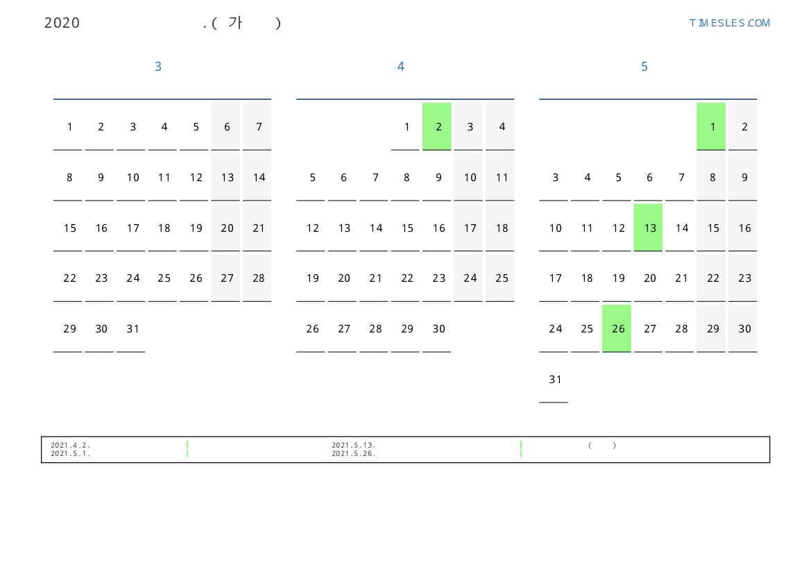 연휴가있는 계절별 세로 달력