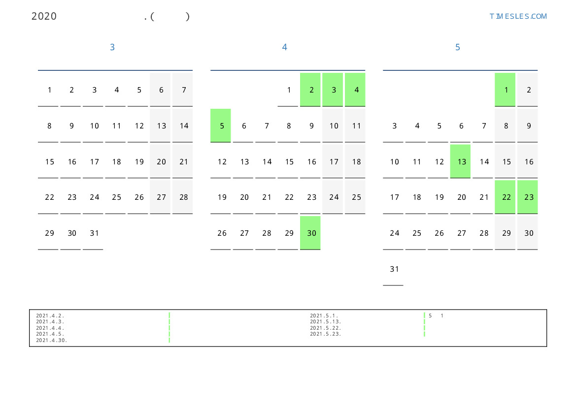 연휴가있는 계절별 세로 달력
