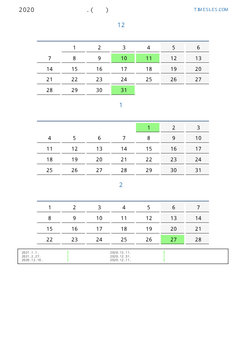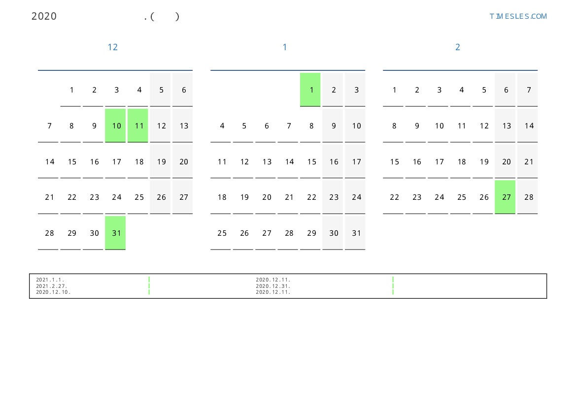 연휴가있는 계절별 세로 달력