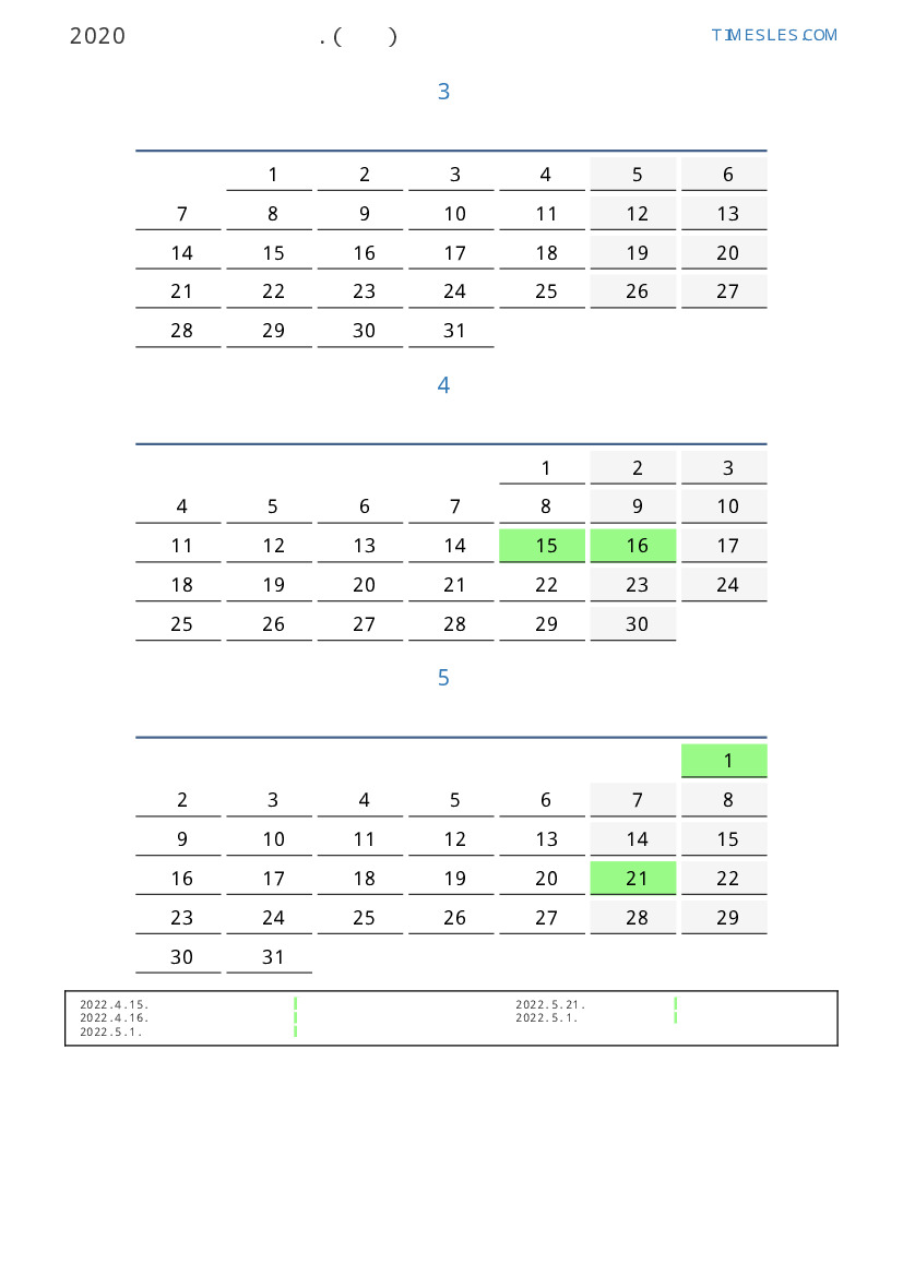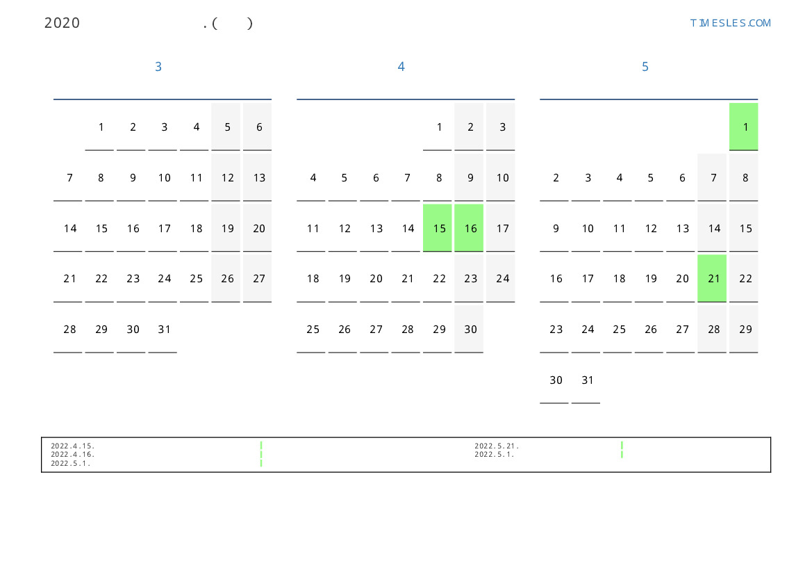 연휴가있는 계절별 세로 달력