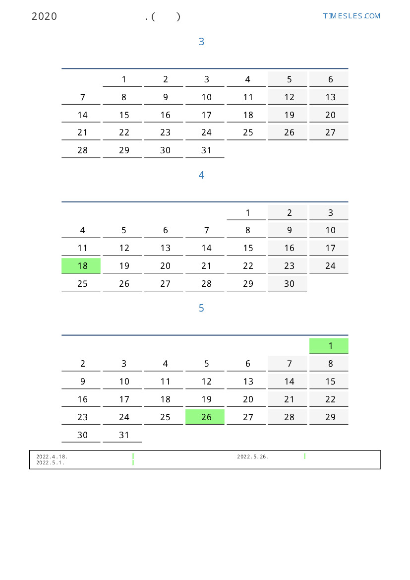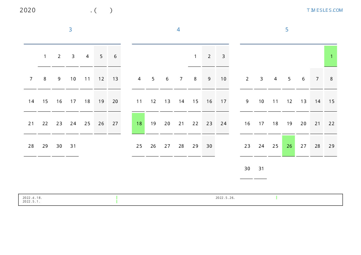 콩고 2022 년 봄을 위해 공휴일 및 주말이 포함 된 PDF 캘린더 다운로드 및 인쇄