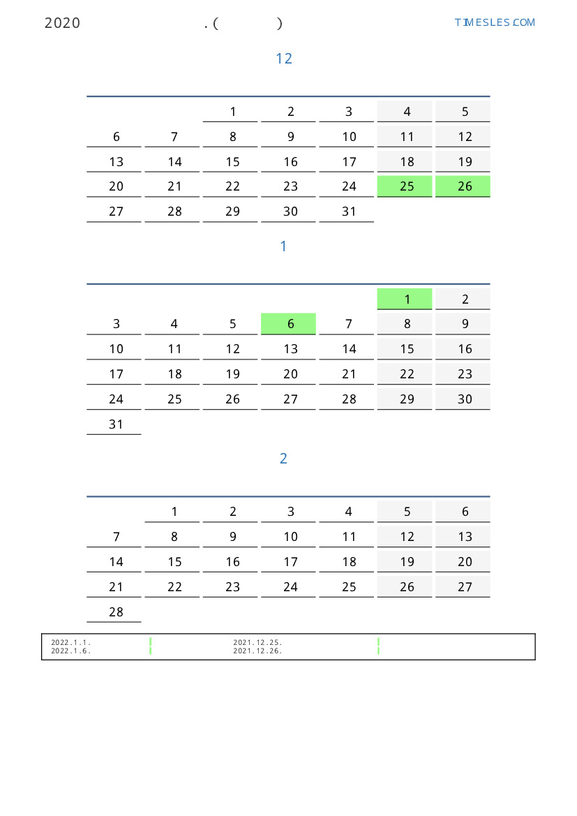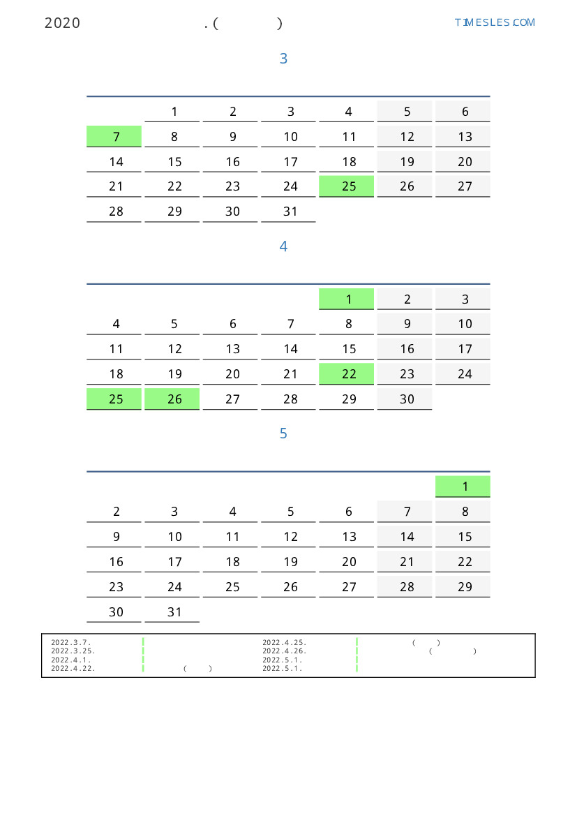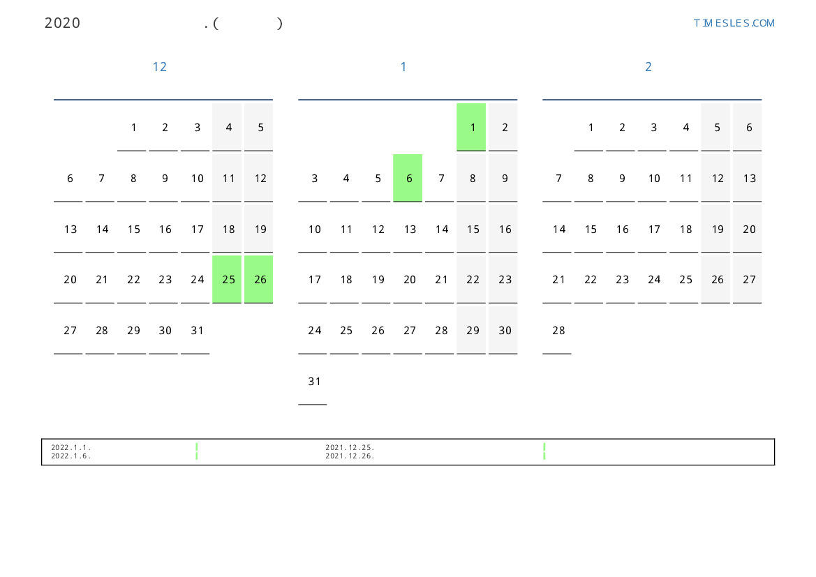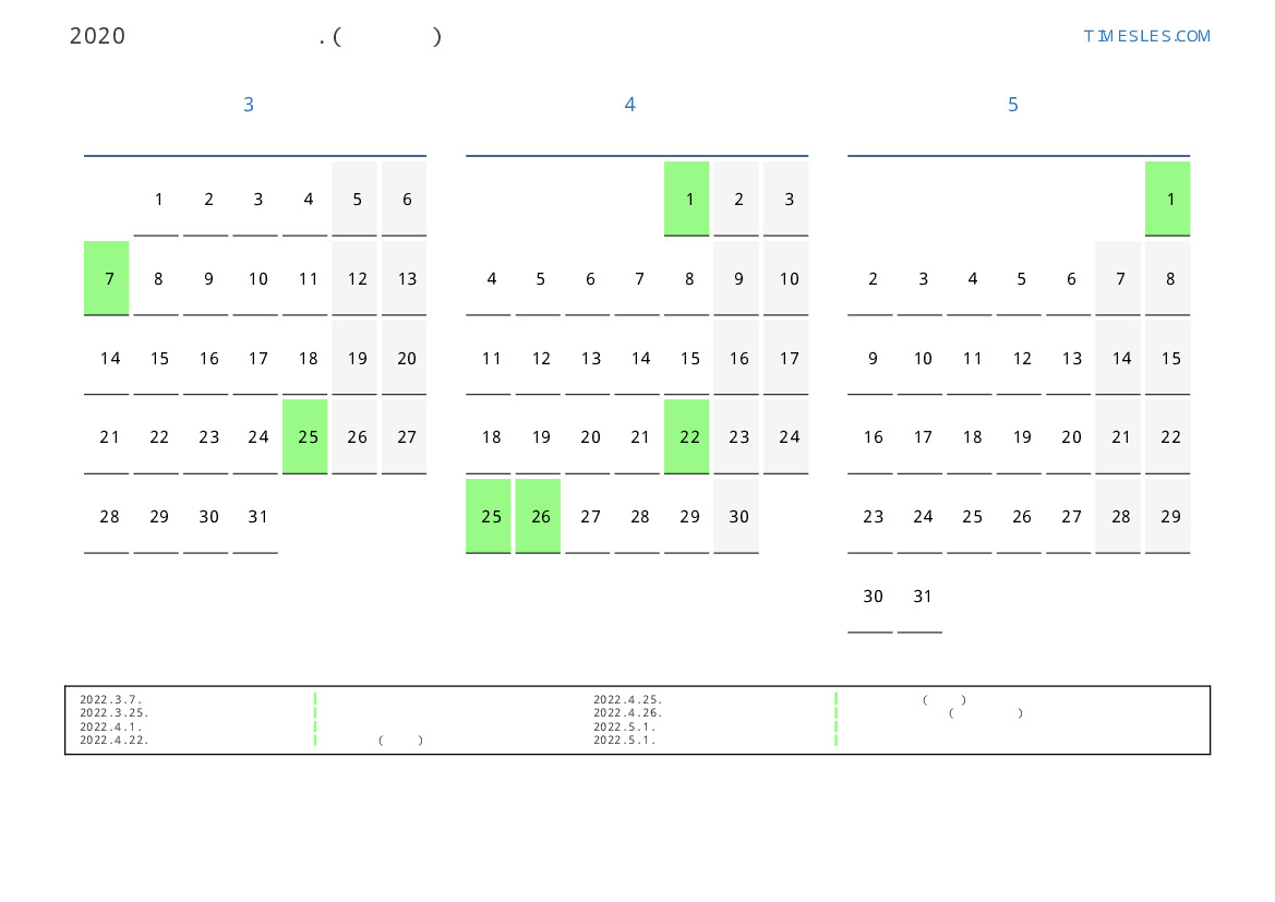 연휴가있는 계절별 세로 달력