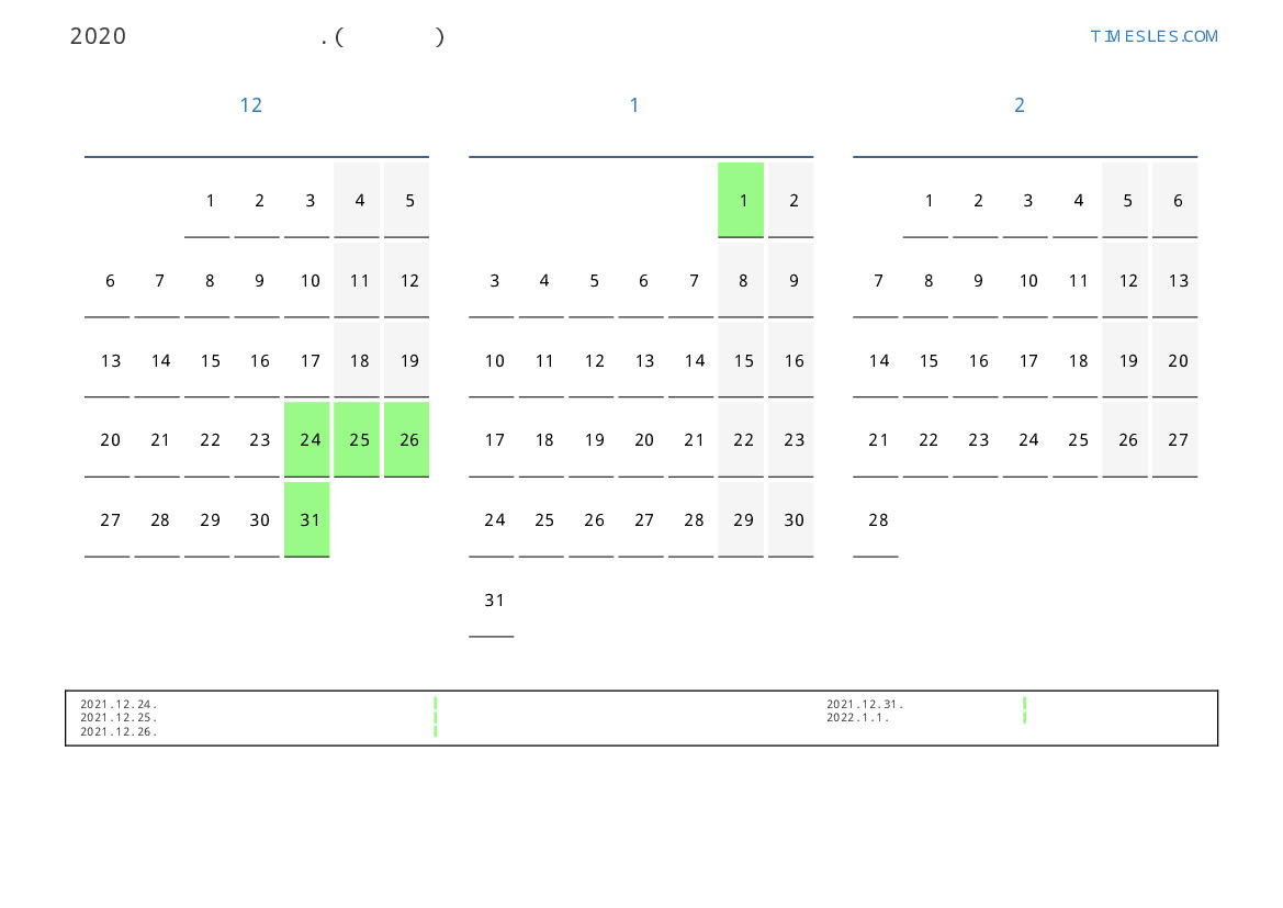 연휴가있는 계절별 세로 달력