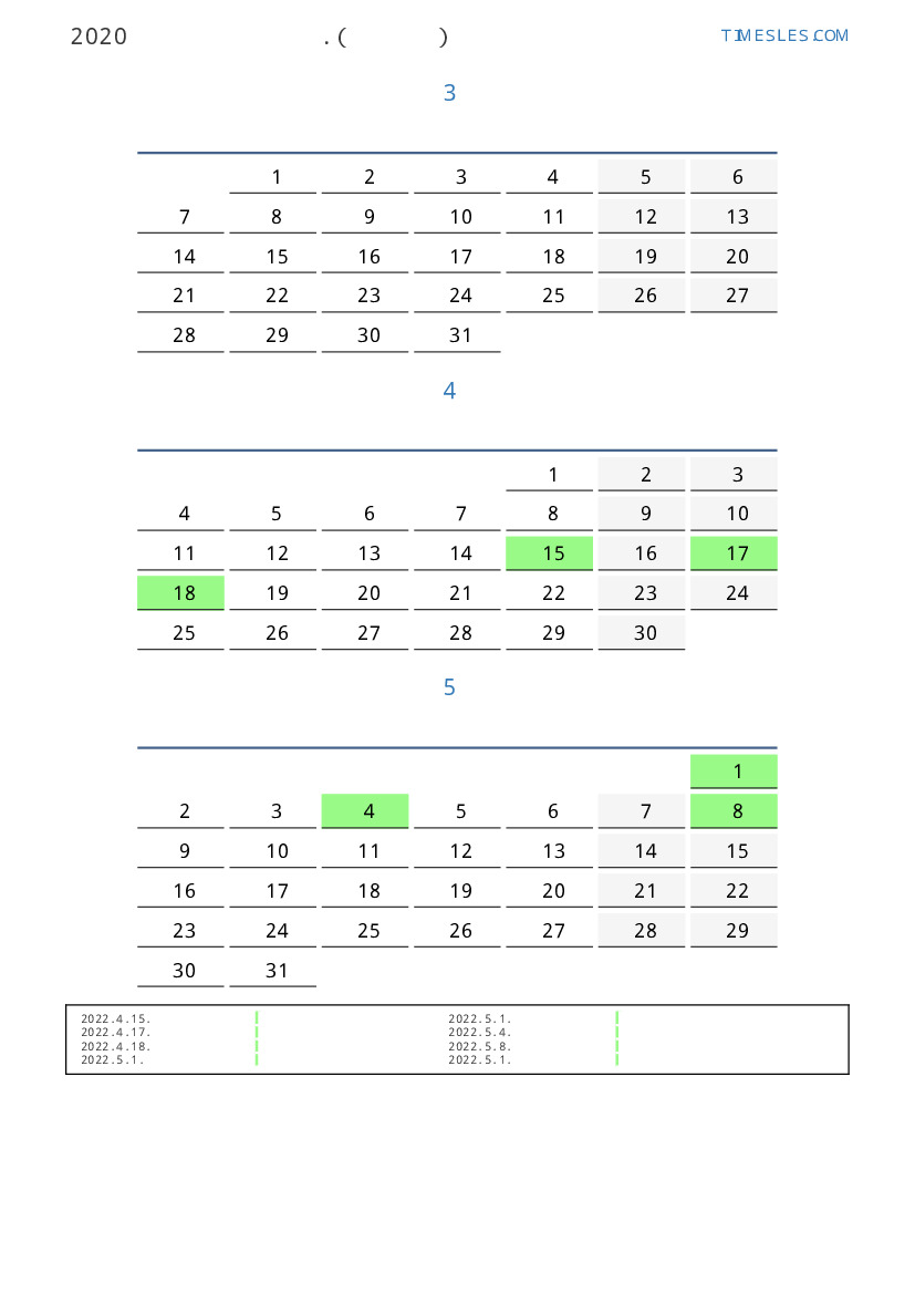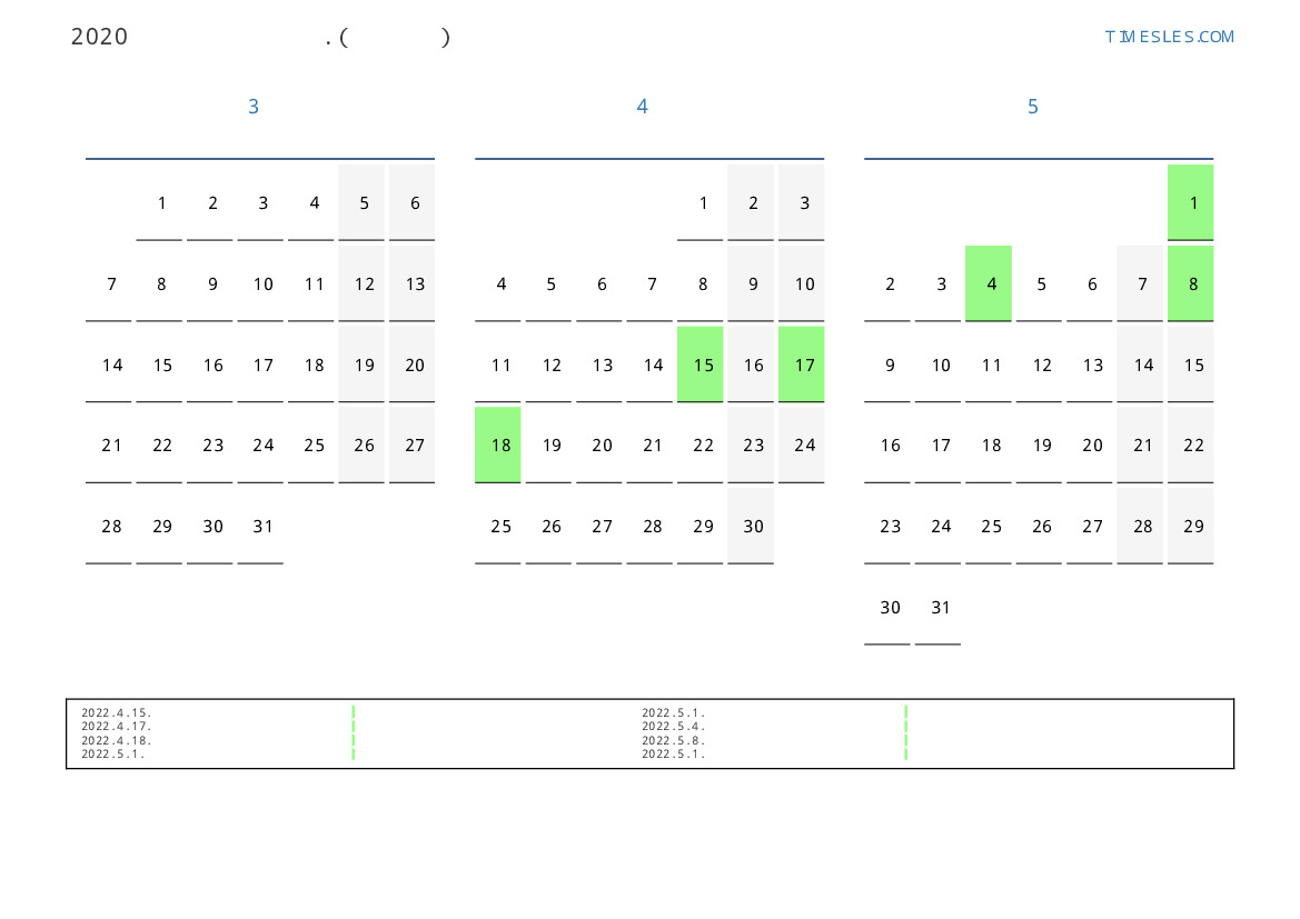 라트비아 2022 년 봄을 위해 공휴일 및 주말이 포함 된 PDF 캘린더 다운로드 및 인쇄