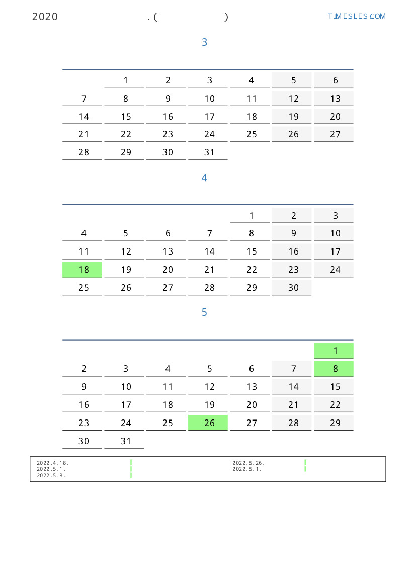 연휴가있는 계절별 세로 달력