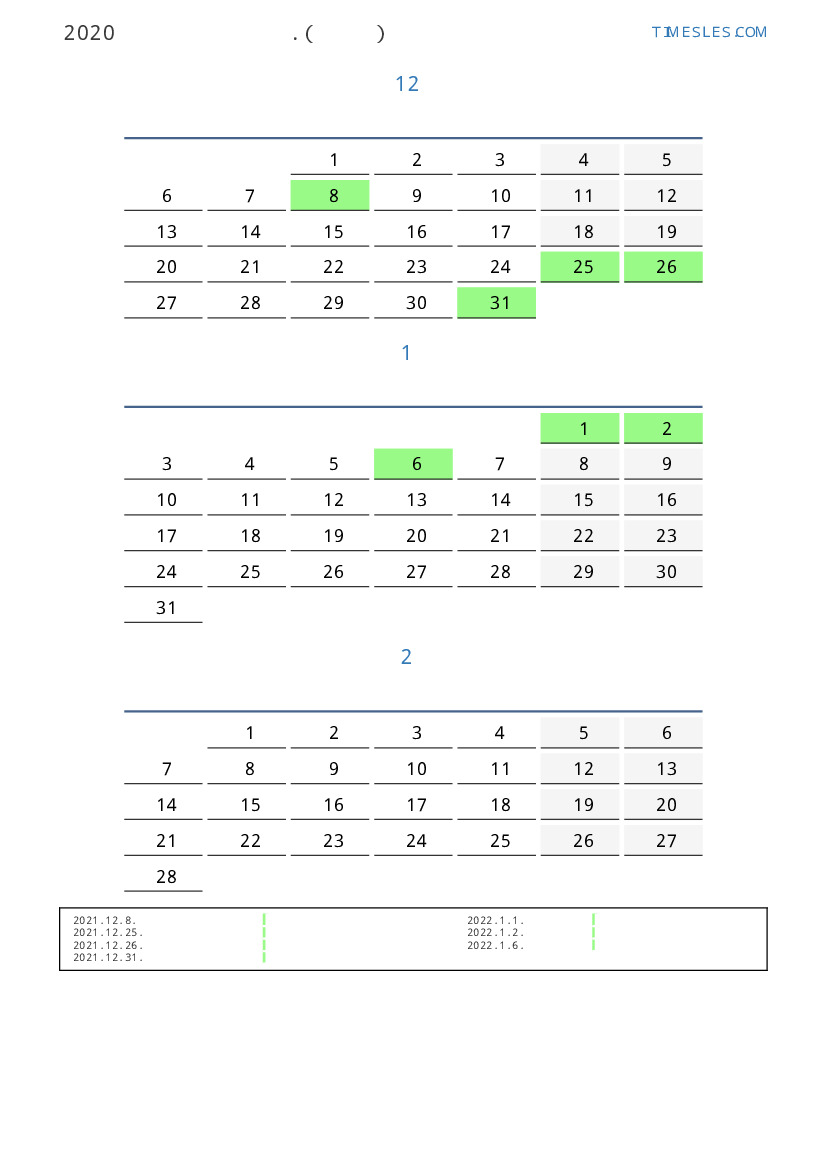 연휴가있는 계절별 세로 달력