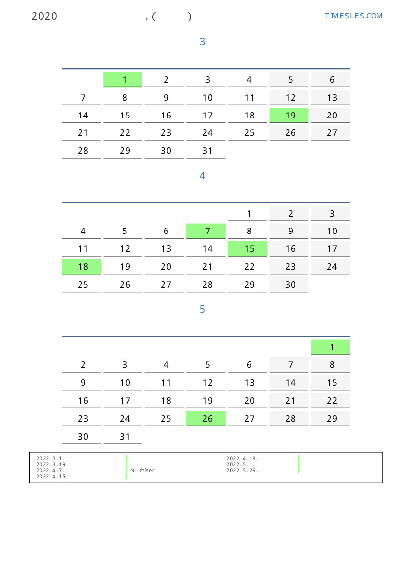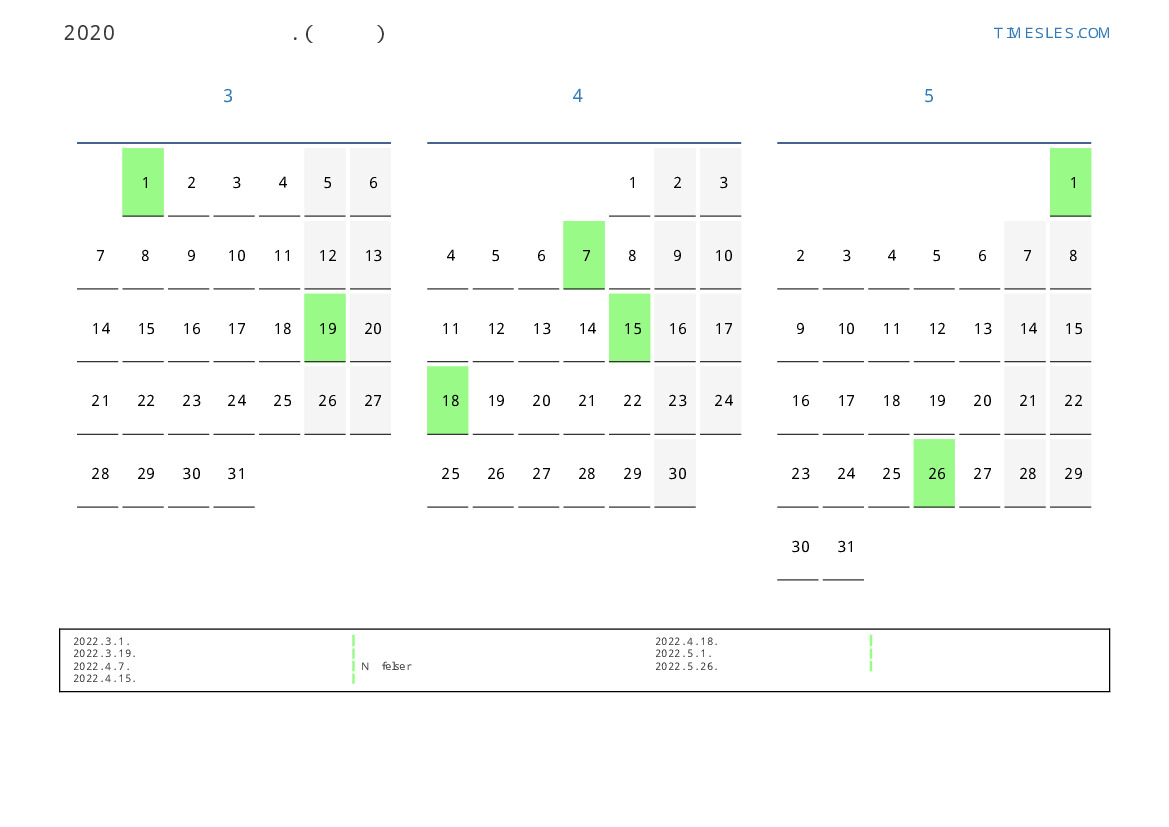 스위스 2022 년 봄을 위해 공휴일 및 주말이 포함 된 PDF 캘린더 다운로드 및 인쇄