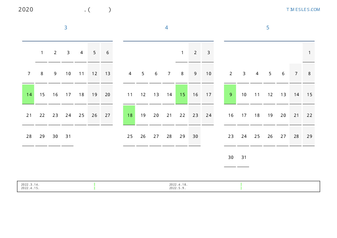 투발루 2022 년 봄을 위해 달력