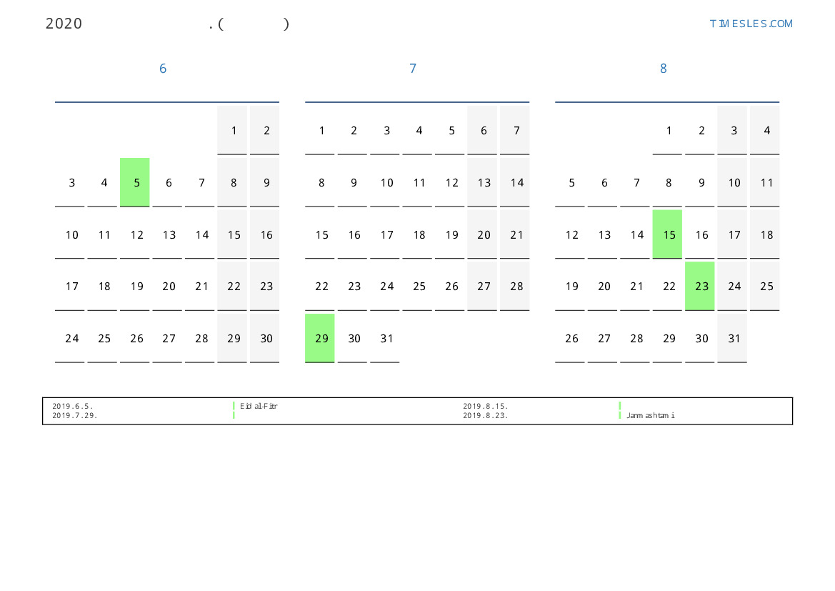 모리셔스 2019 년 여름 동안 공휴일 및 주말이 포함 된 PDF 캘린더 다운로드 및 인쇄