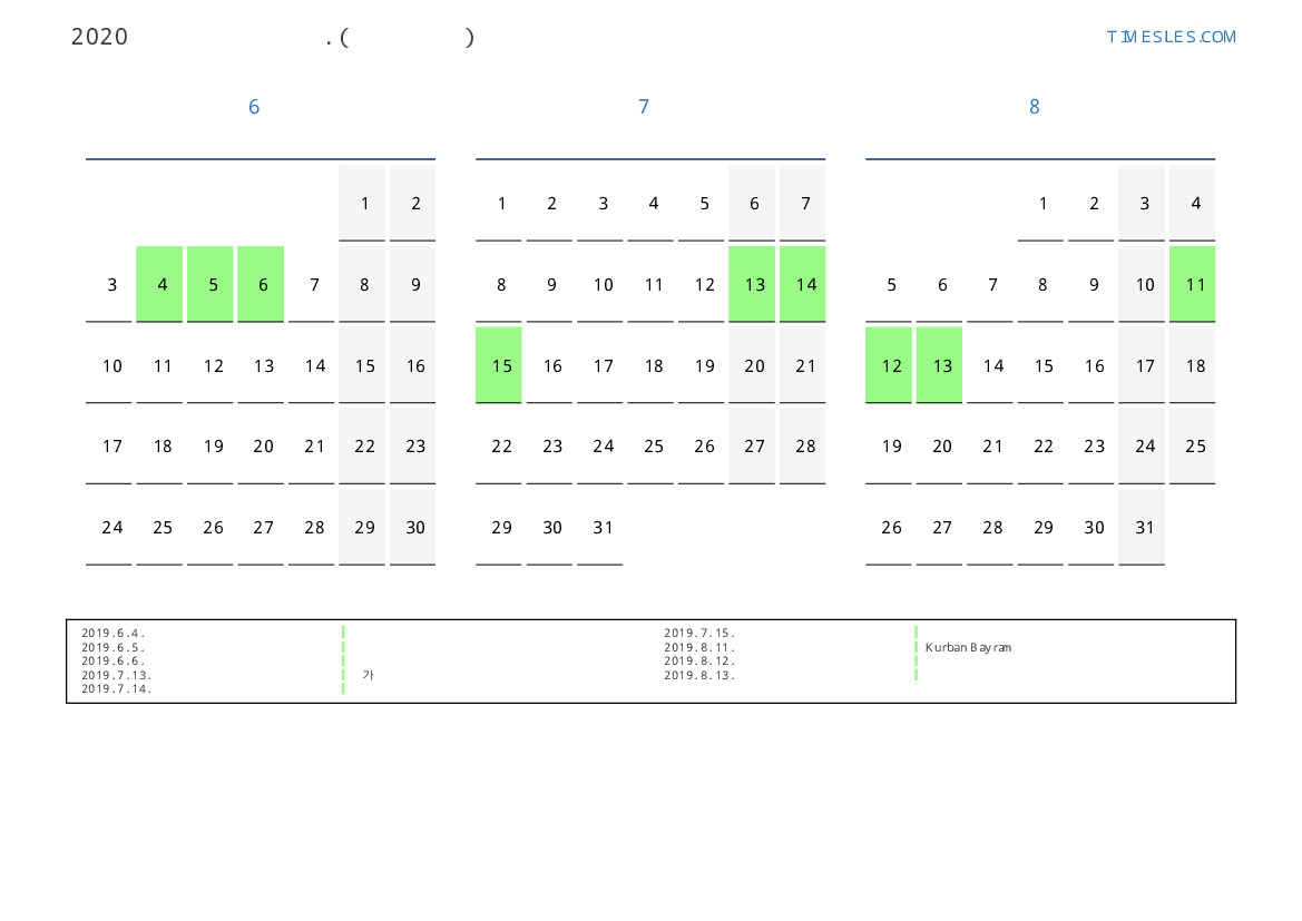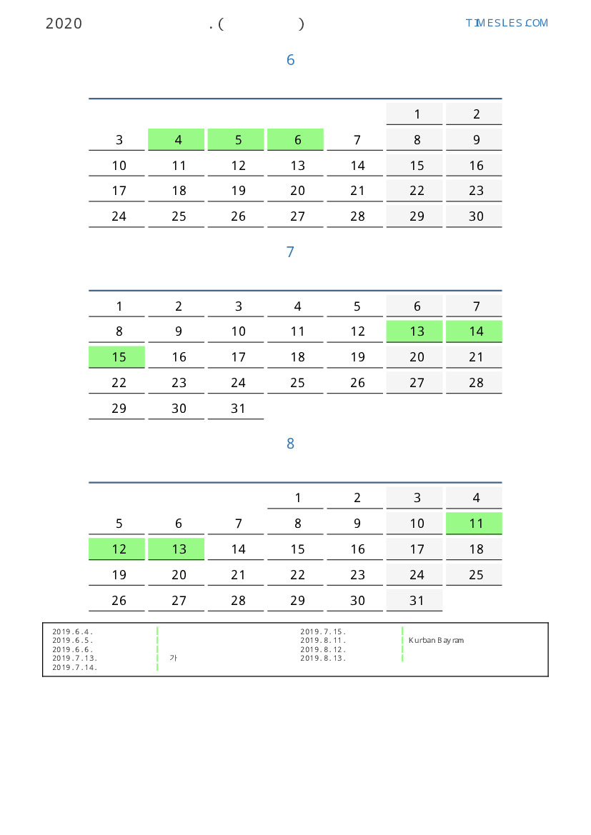 몬테네그로 2019 년 여름 동안 공휴일 및 주말이 포함 된 PDF 캘린더 다운로드 및 인쇄
