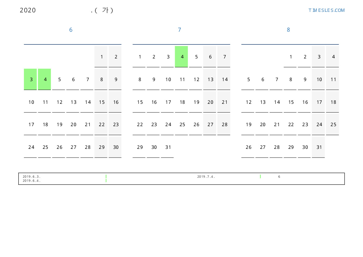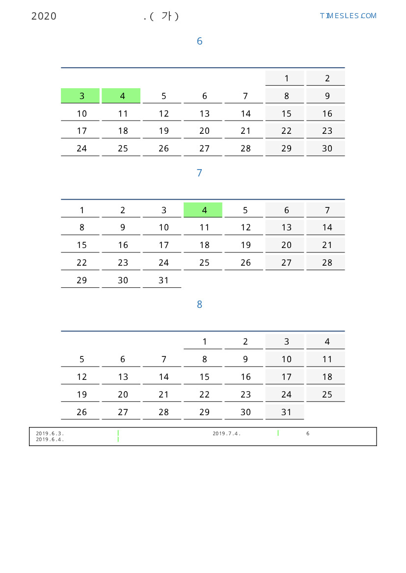 통가 2019 년 여름 동안 공휴일 및 주말이 포함 된 PDF 캘린더 다운로드 및 인쇄