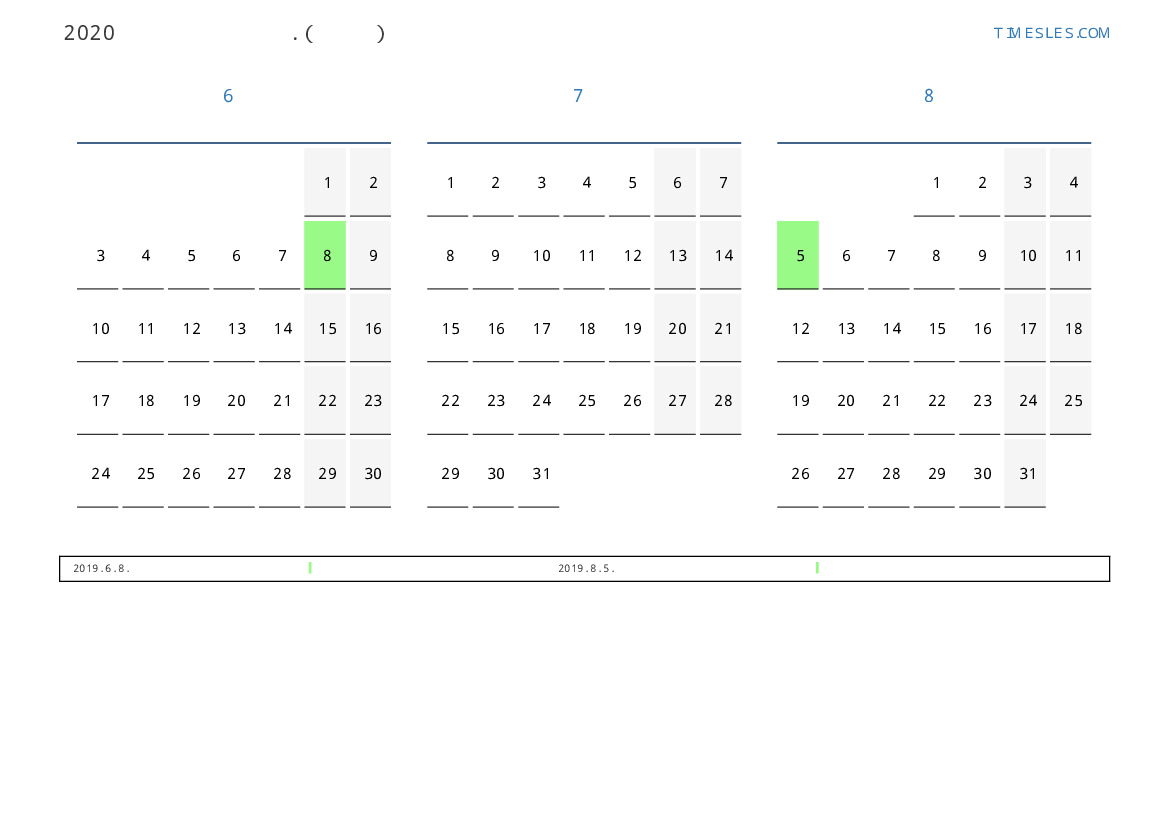 투발루 2019 년 여름 동안 공휴일 및 주말이 포함 된 PDF 캘린더 다운로드 및 인쇄