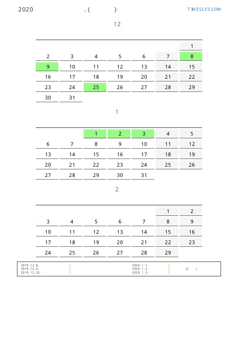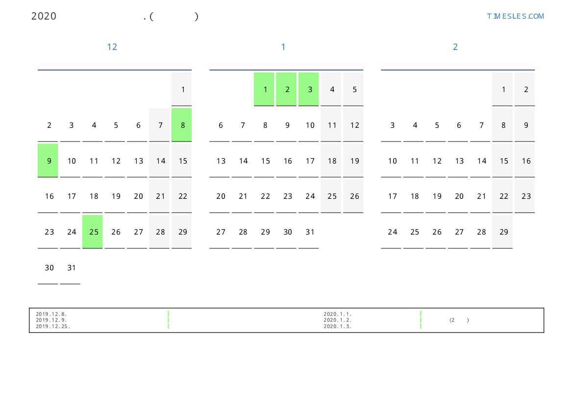 연휴가있는 계절별 세로 달력