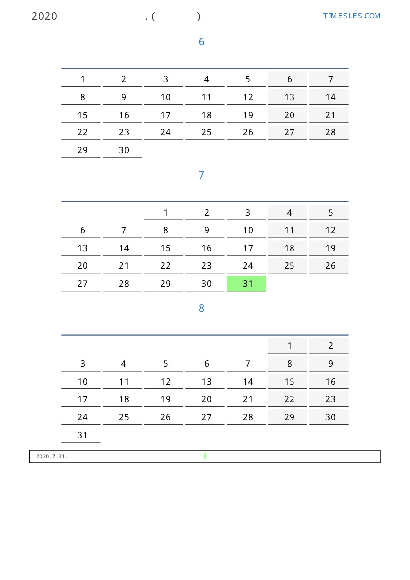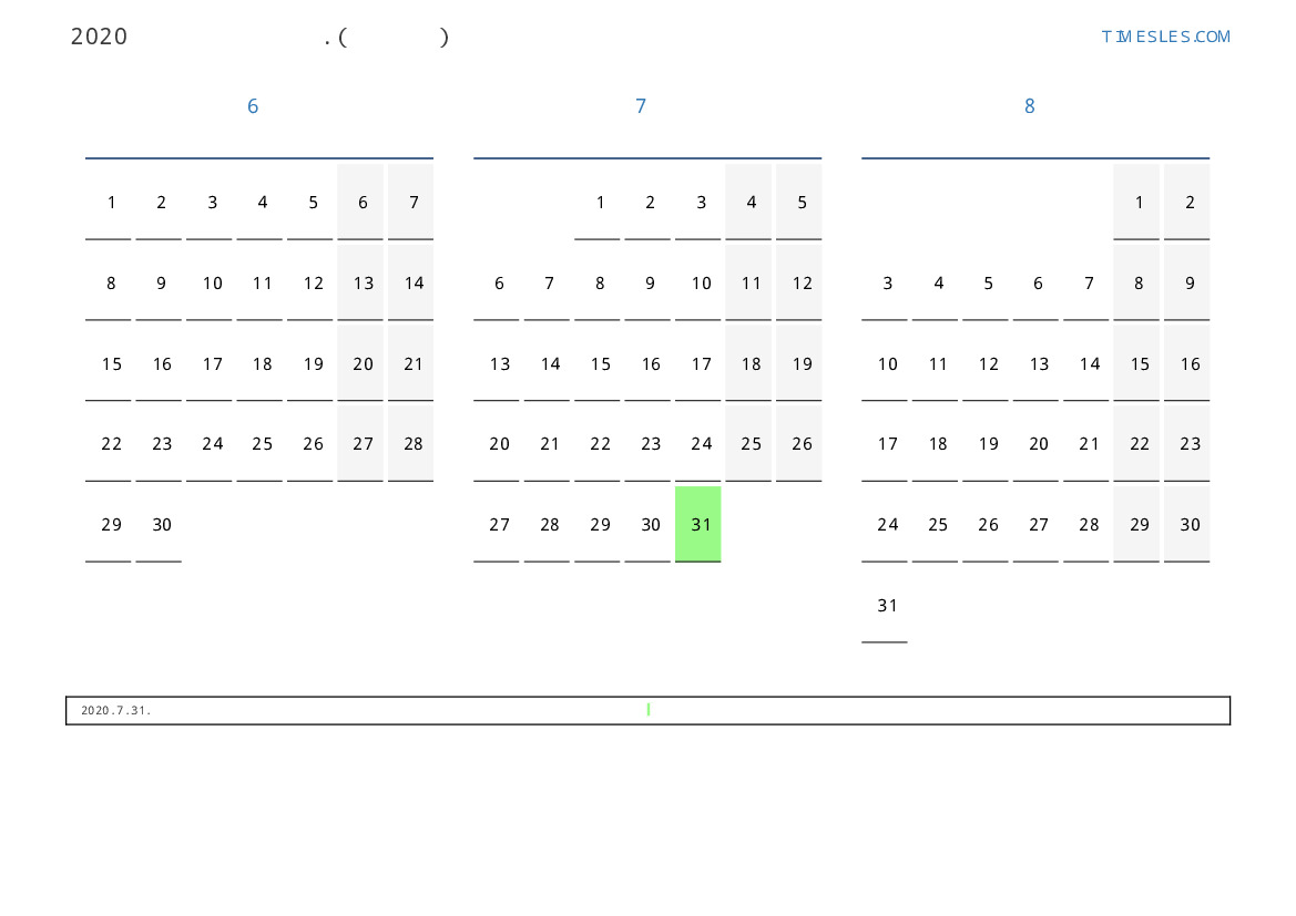 알바니아 2020 년 여름 동안 공휴일 및 주말이 포함 된 PDF 캘린더 다운로드 및 인쇄