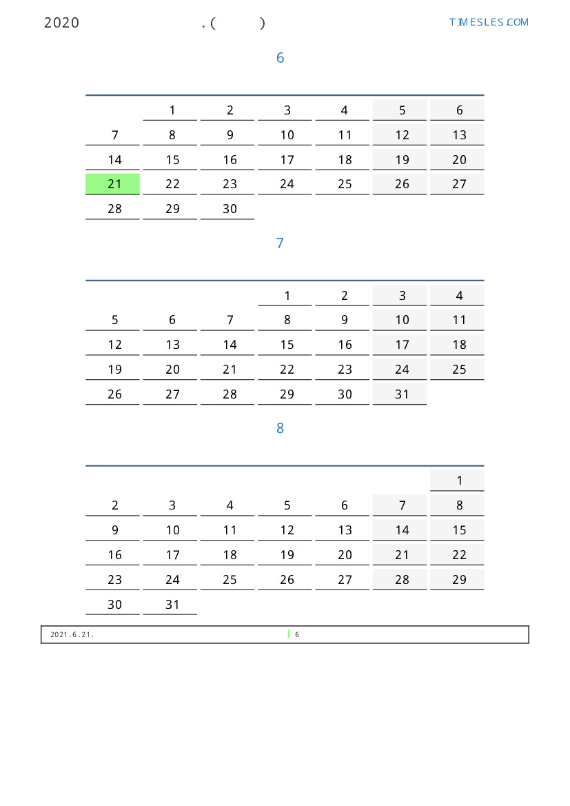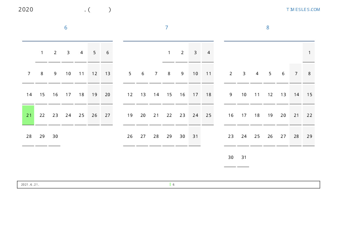 앙골라 2021 년 여름 동안 공휴일 및 주말이 포함 된 PDF 캘린더 다운로드 및 인쇄