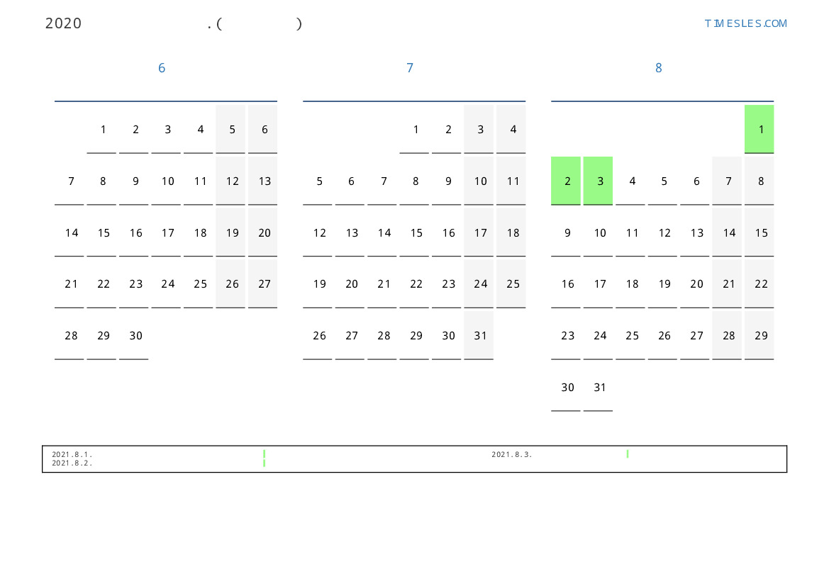 바베이도스 2021 년 여름 동안 공휴일 및 주말이 포함 된 PDF 캘린더 다운로드 및 인쇄